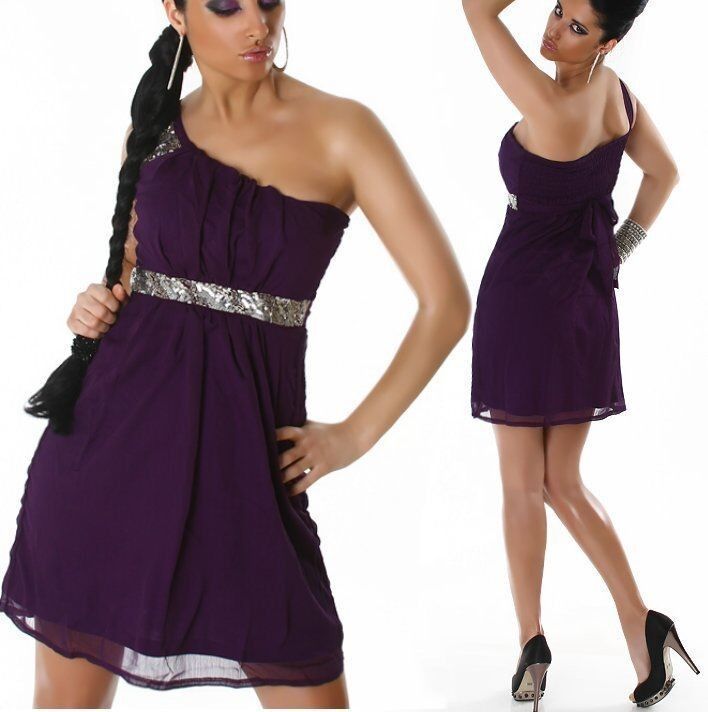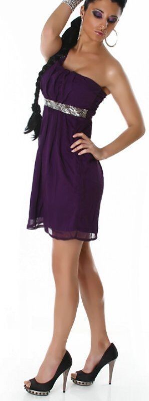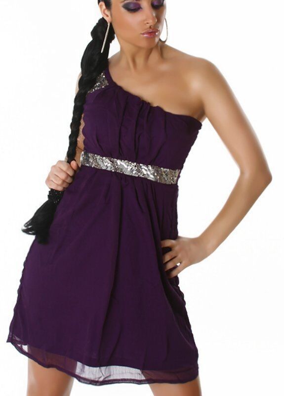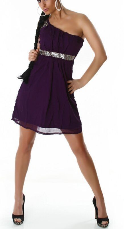 SeXy Miss Damen one Shoulder Perlen Chiffon Mini Kleid Abend Dress 34 36 38 40 lila