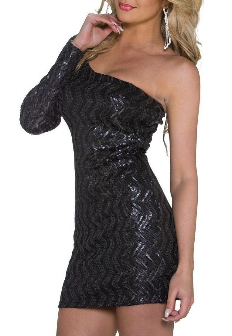 SeXy Miss Damen Pailletten glitzer Mini Kleid Edel XS 34 1 Shoulder Dress schwarz