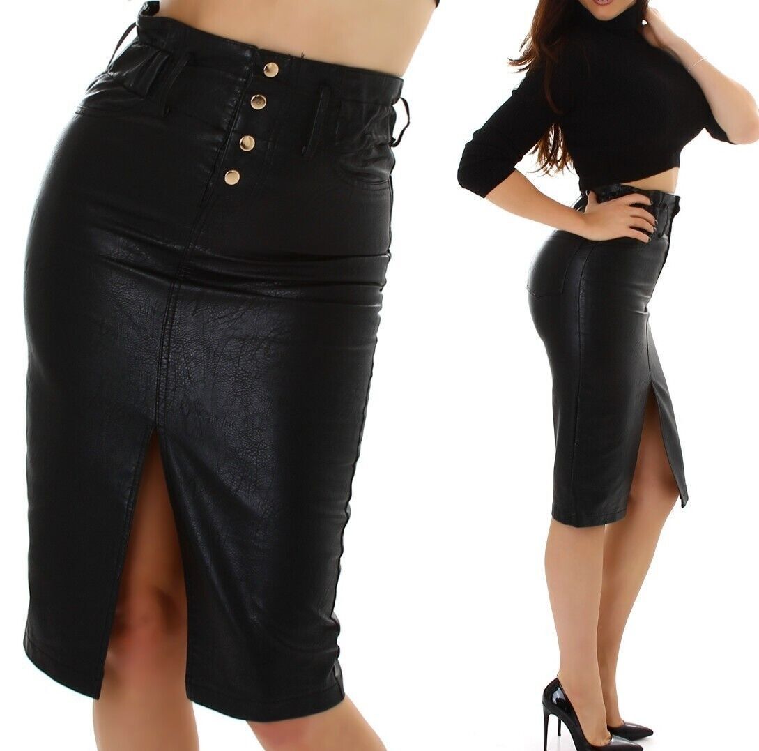 SeXy Miss Damen Pencil Midi Rock Leder Optik Kunstleder S 34 XL 40 schwarz Neu