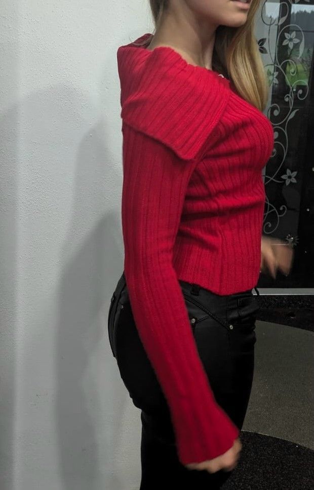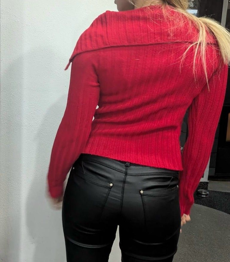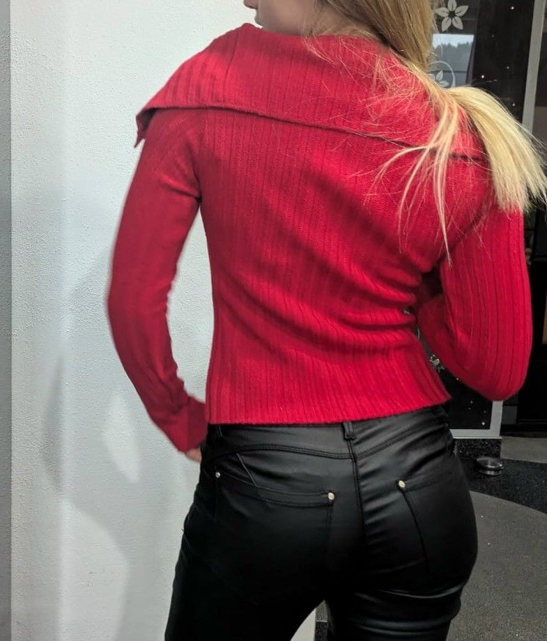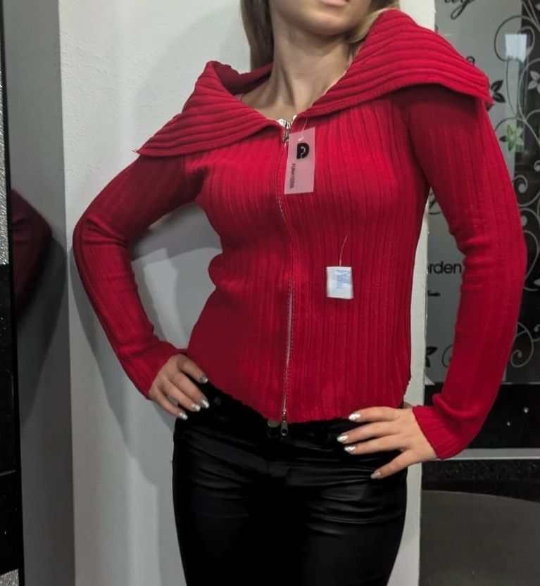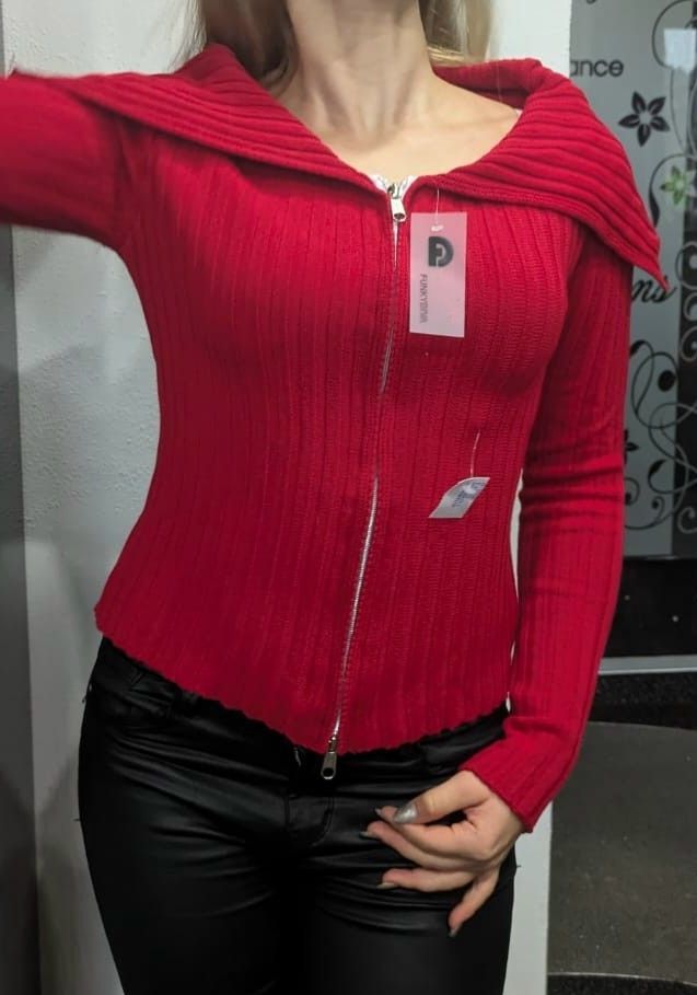 SEXY Miss Damen Pullover Ripp Strick Pulli Zipper Weste Cardigan M/L 36/38 rot