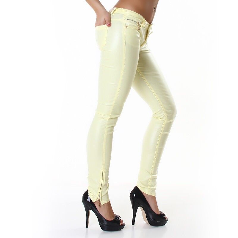 SeXy Miss Damen Röhre Skinny Hüft Hose glänzig stretch XXS 32 34 36 38 40 gelb
