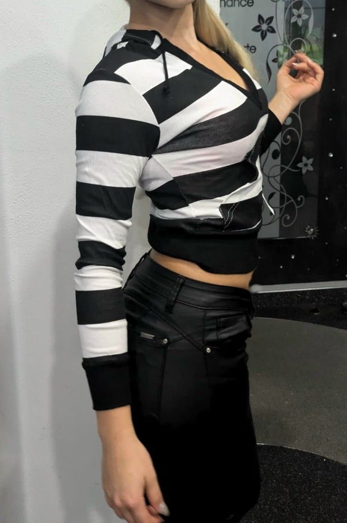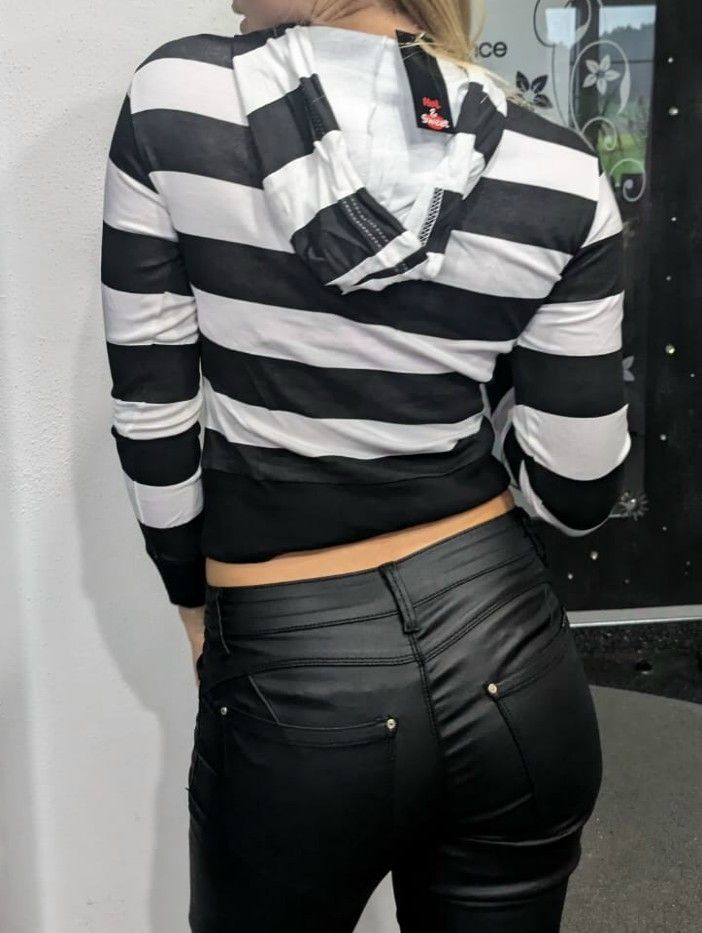 SEXY Miss Damen Shirt Pulli Hoody Streifen Langarm Top S/M 34/36 weiß/schwarz