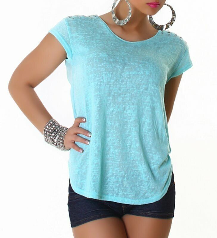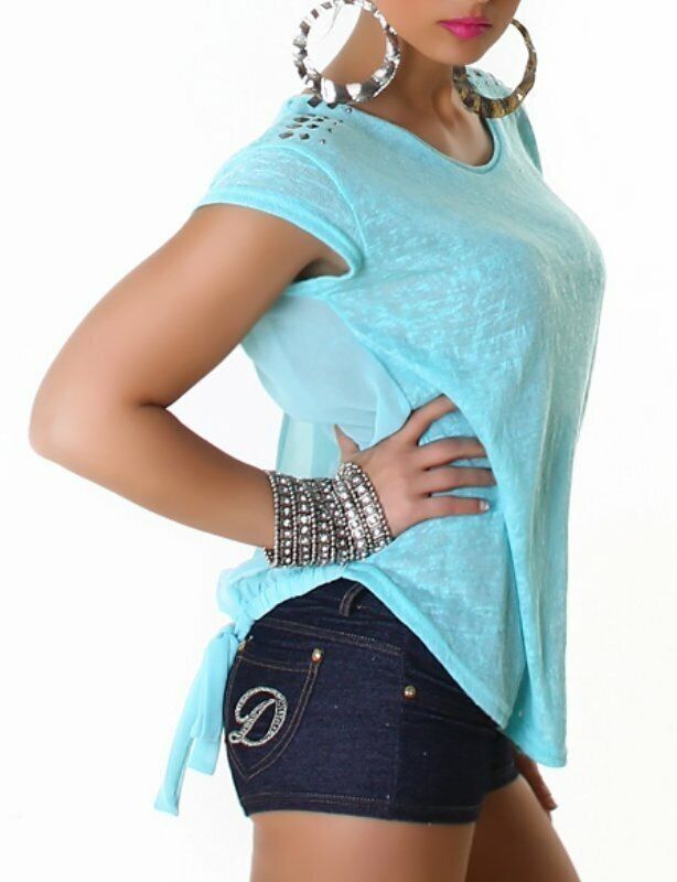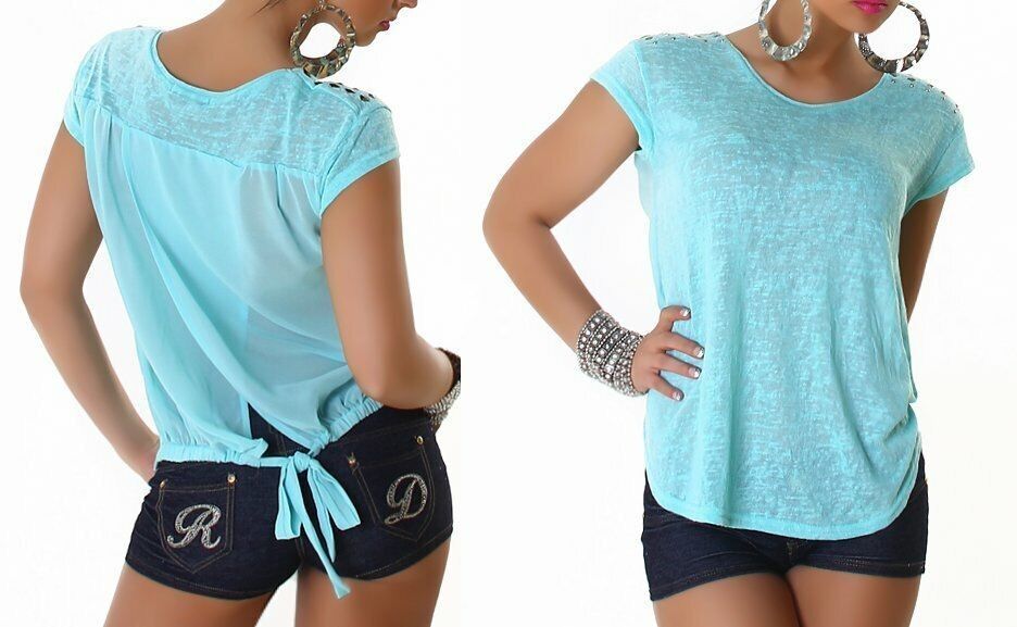 SeXy Miss Damen Shirt Rücken offen Wickel Bluse Nieten Top S/ M 34/36 blau