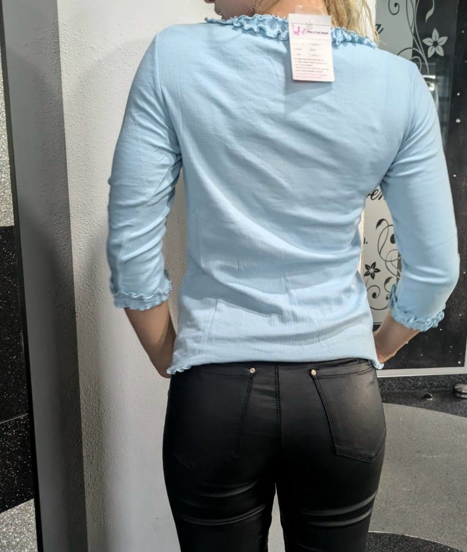 SEXY Miss Damen Shirt Weste Cardigan Rüschen Top 32/34 36/38 40/42 44/46 blau