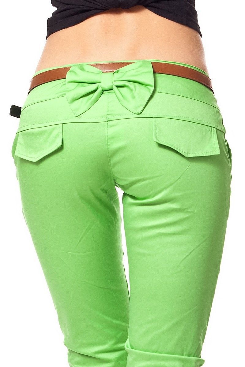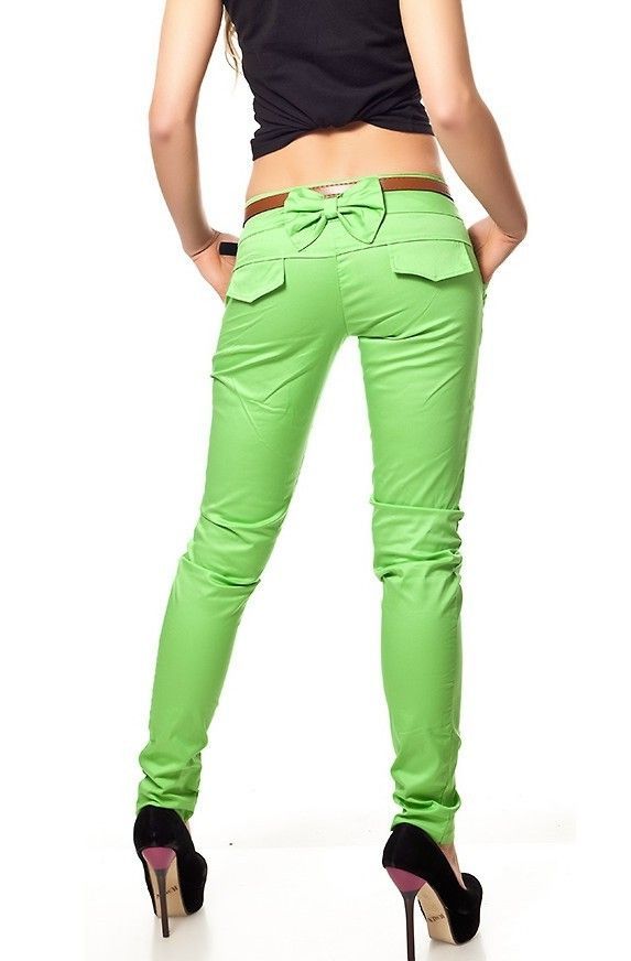 SeXy Miss Damen Skinny Stoff Hüft Hose Schleife Röhre Gürtel S 34 grün