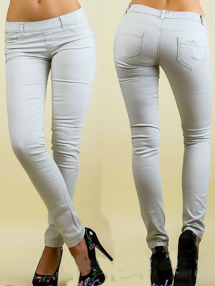 Sexy Miss Damen Skinny Stretch Stoff Hose Jeans Röhre S 34 L 38 XL 40 grau beige
