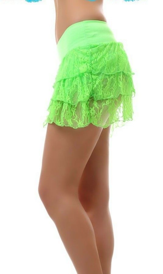 SeXy Miss Damen Spitze Volant Mini Rock XS-S Freesize TOP Girly STYLE neon grün