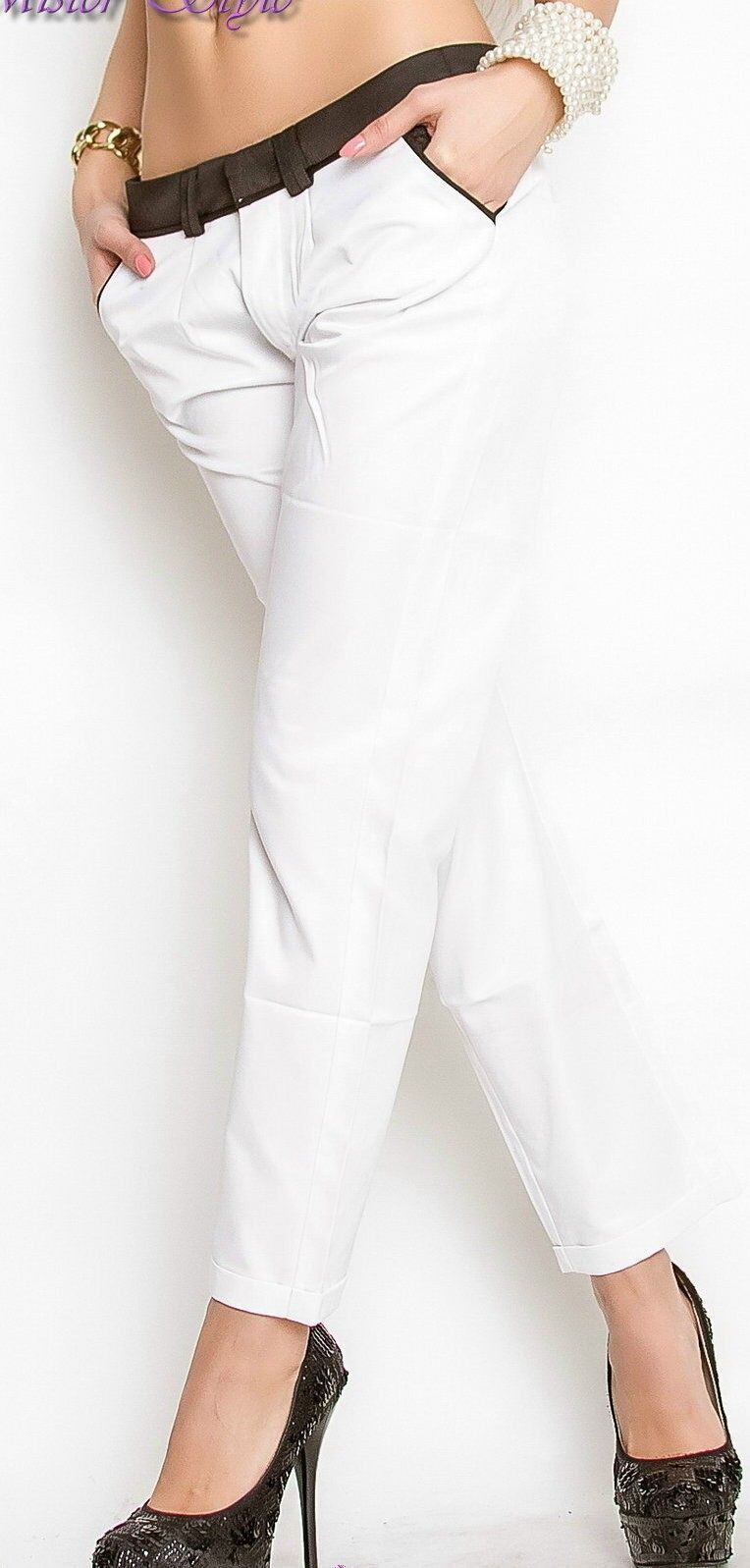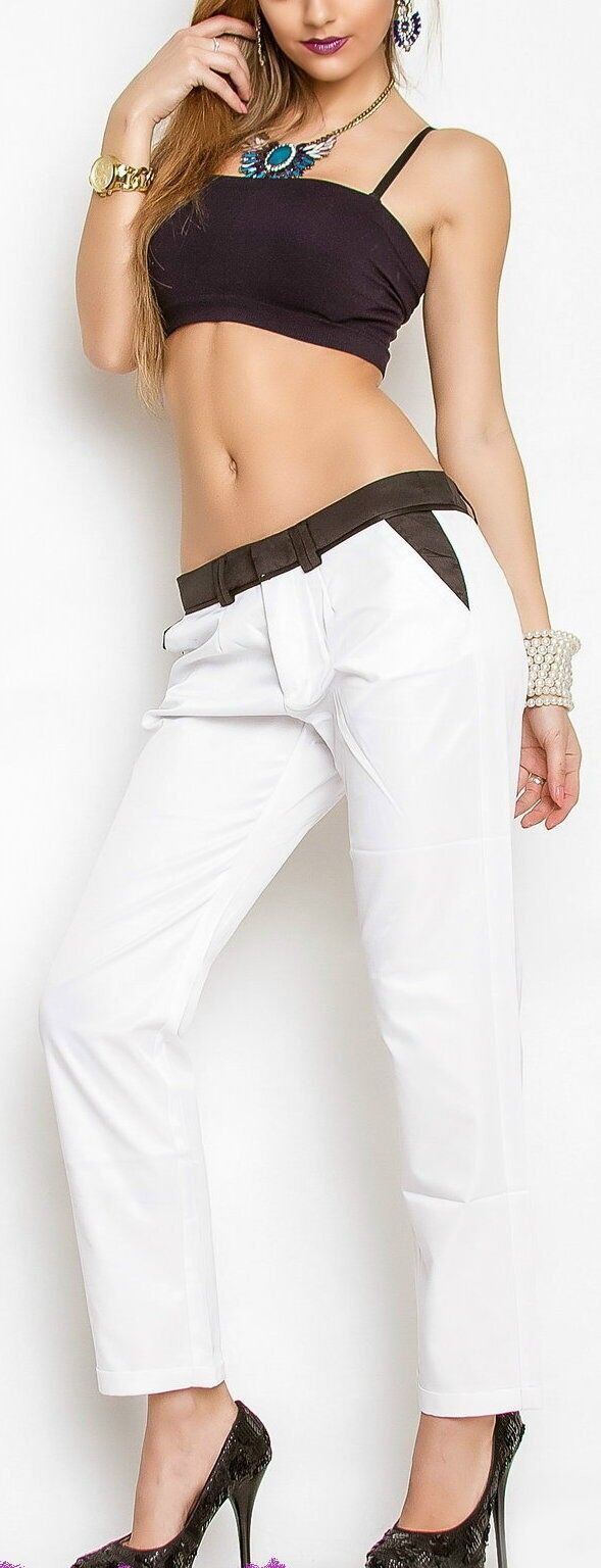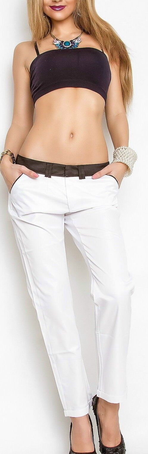 Business Style Hose in weiß schwarz am Bund und den Eingrifftaschen farblich abgesetzt Gürtelschlaufen Reißverschluß und Haken Taschen hinten .. Saum mit kleinem Umschlag figurbetonter Schnitt Eye Catcher Hot & Sexy In-Style Look _____________________________ Im Artikel steht Französische Größe