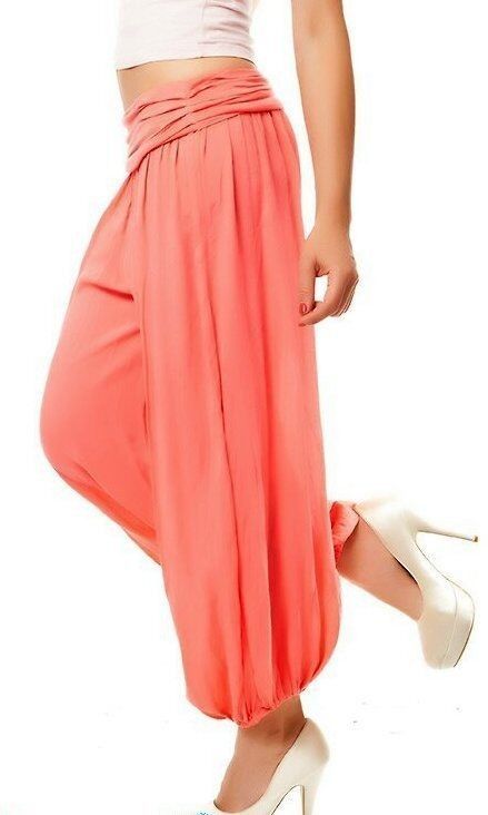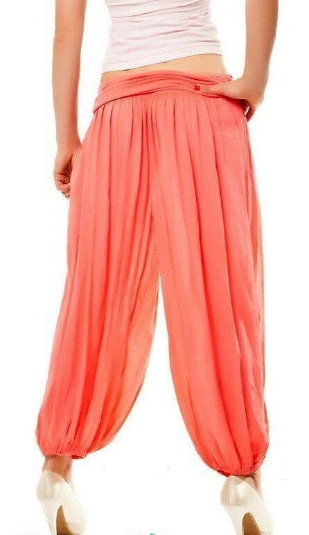 Sexy Miss Damen Stylische Pump Harems Pluder Aladin Sarouel Hose 34/36/38 coral