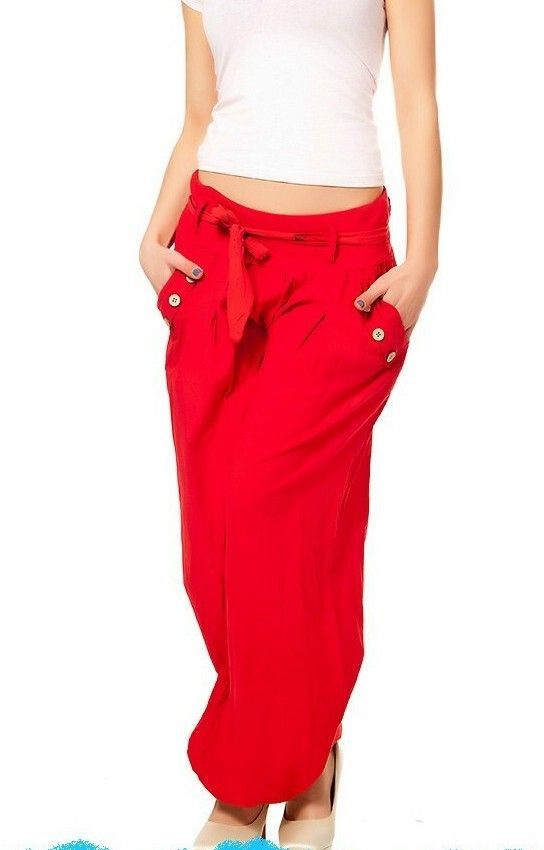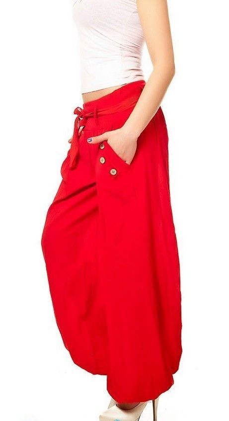 Sexy Miss Damen Stylische Pump Harems Pluder Aladin Sarouel Hose 34/36/38 rot