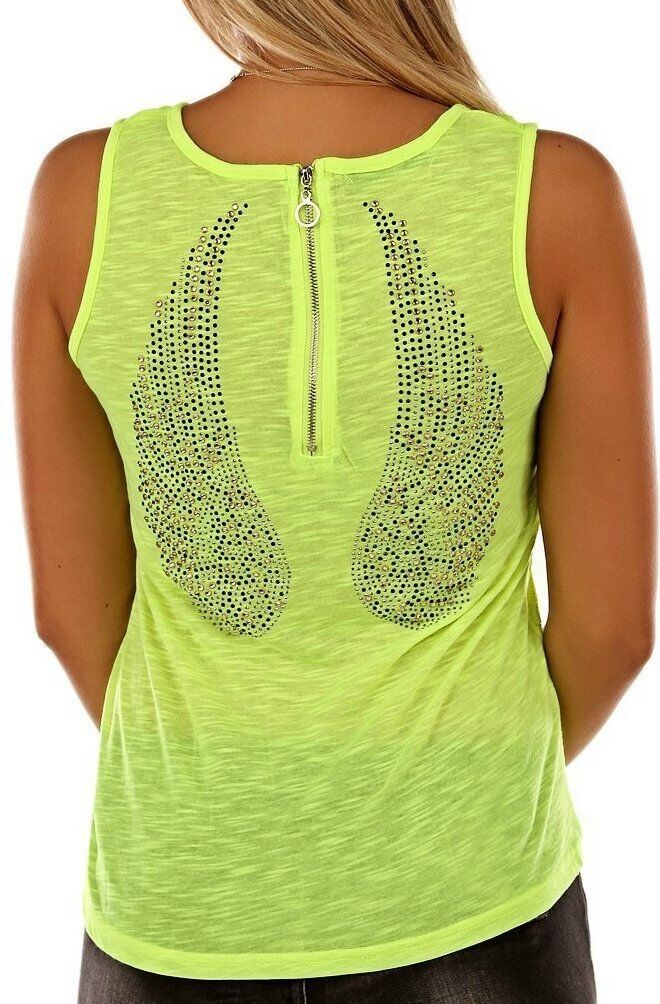 SeXy Miss Damen Tank Top Shirt Rücken Zipp Glamour Steinchen Flügel 34/36/38 gelb