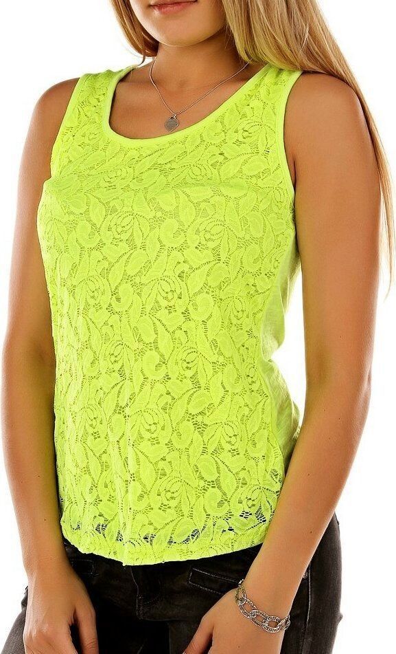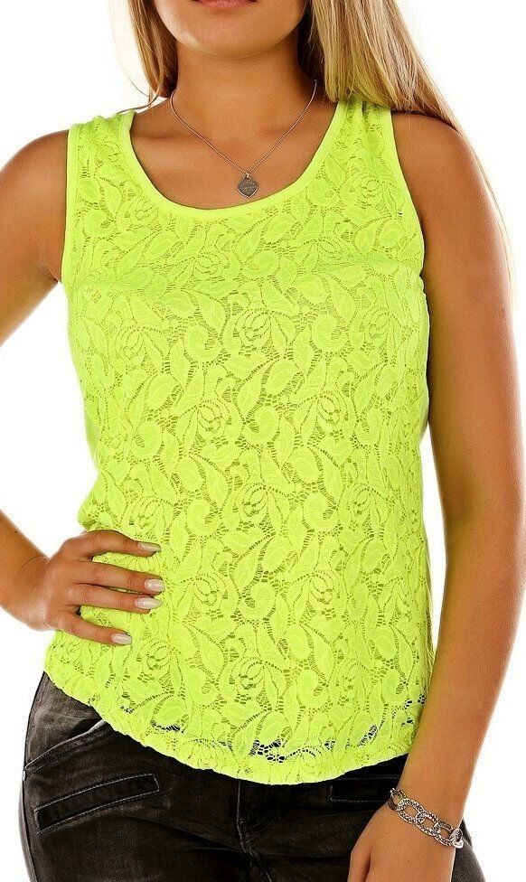 Stylisch leichtes Sommer Tanktop Ärmelloses Top vorn im unterlegten Spitzen Look Glitzer Rücken edel mit Steinchen verziert im Flügel Design elastisches Material Eye Catcher Pur Hot & Sexy In-Style Look _____________________________ Einheitsgröße - Uni - Ohne Größe Maße in ungedehnten Zustand lo