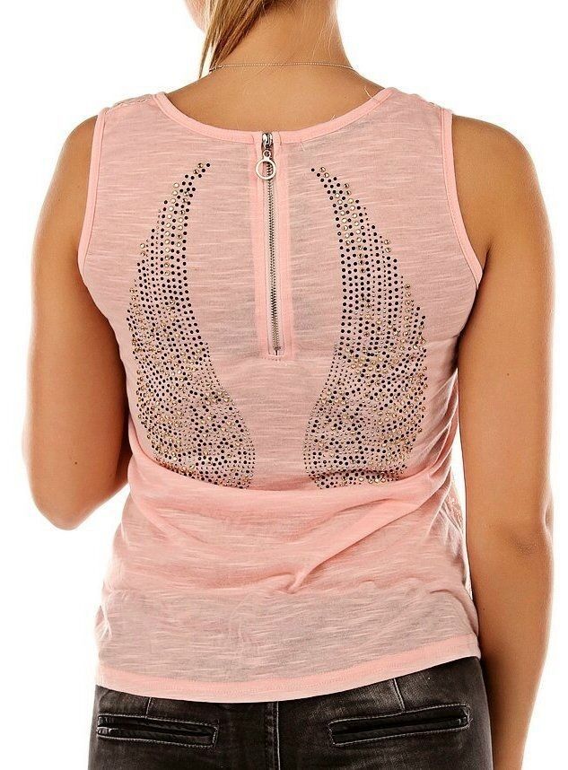 SeXy Miss Damen Tank Top Shirt Rücken Zipp Glamour Steinchen Flügel 34/36/38 rosa