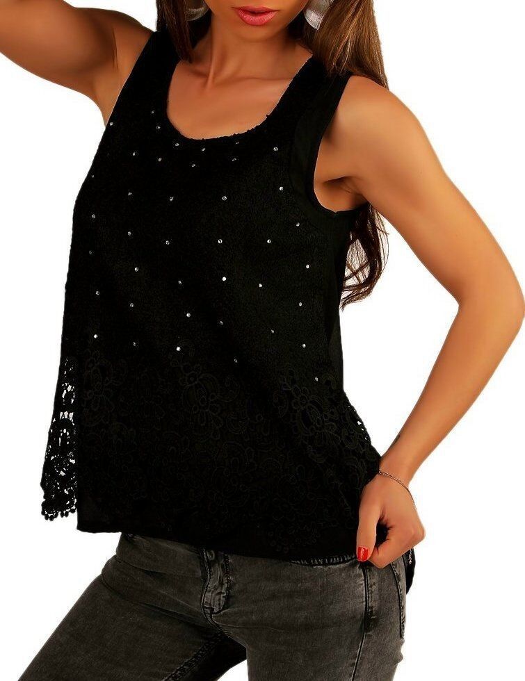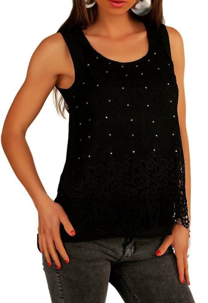 SeXy MiSS Damen Top Spitze Glamour Steine Rücken transparent 34/36 36/38 schwarz
