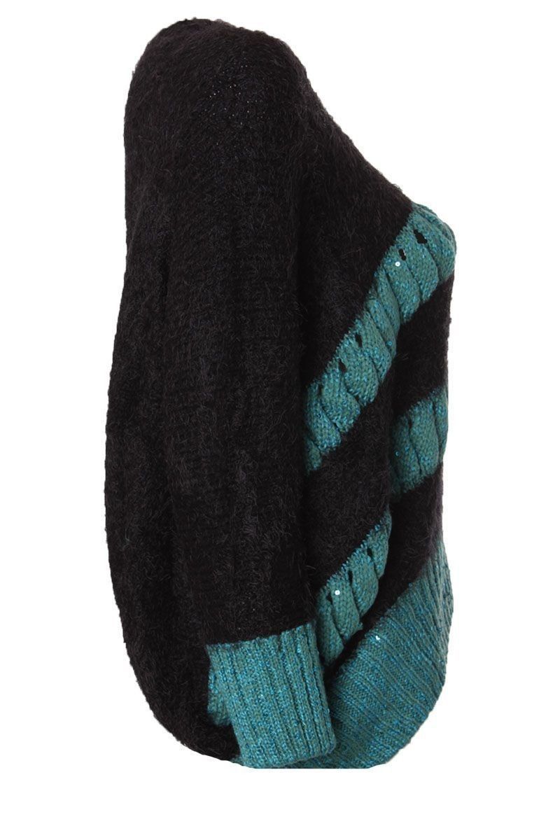 SeXy MiSS Damen Trendy Pullover Strick Pulli Streifen Pailletten 34/36/38 Petrol