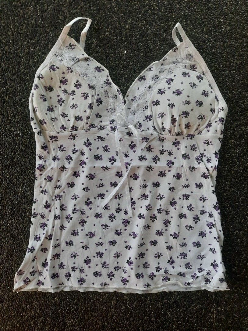 SeXy Miss Damen V Ausschnitt Girly Blumen Träger Top Push up XS/S weiß lila