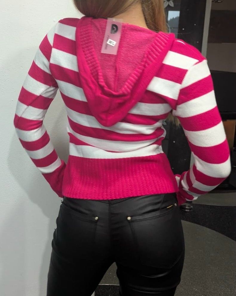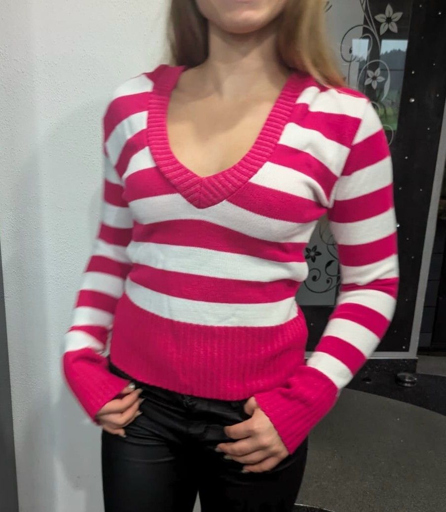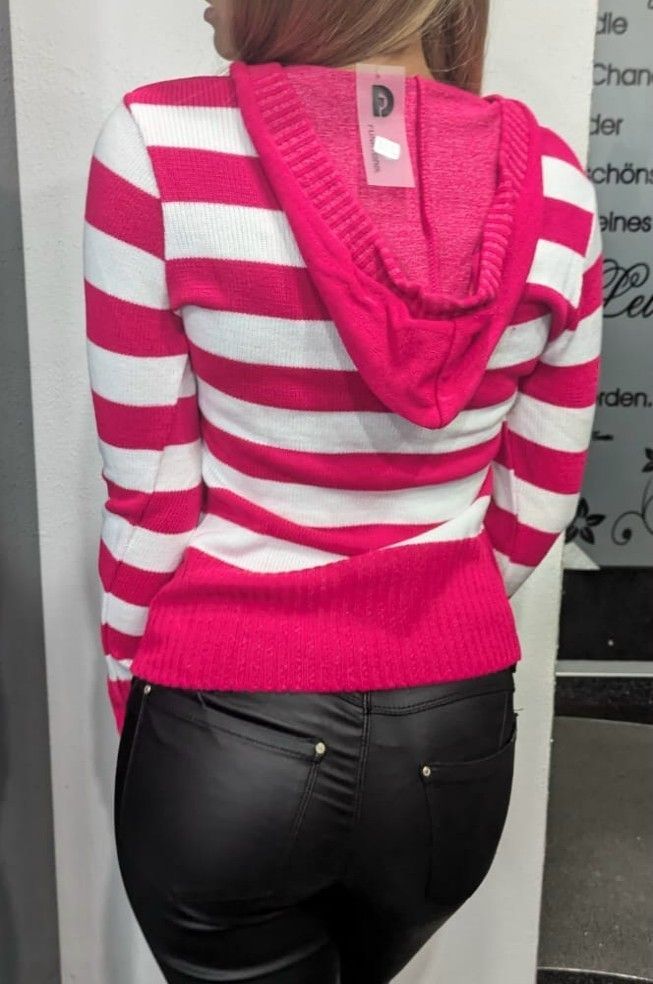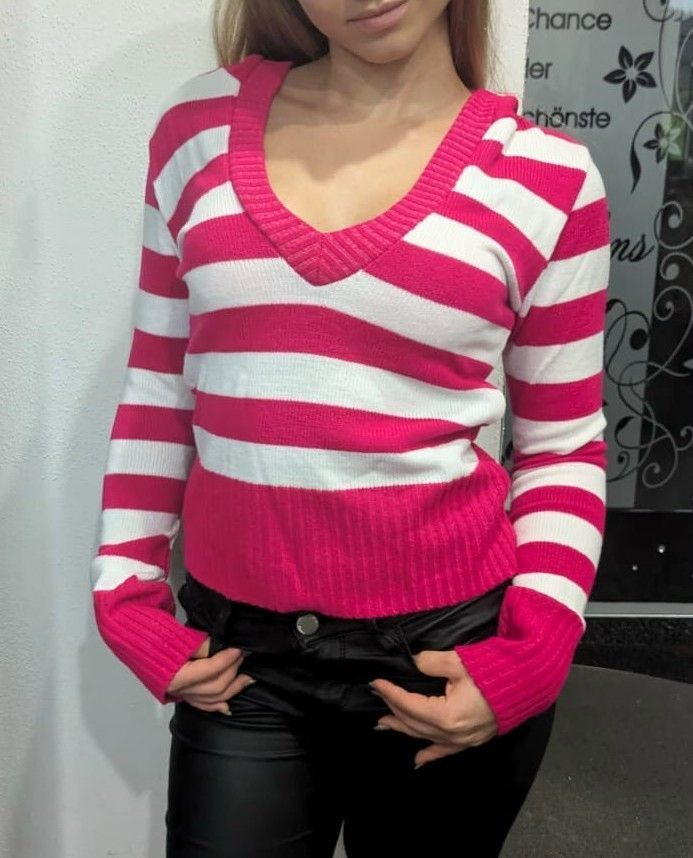 SEXY Miss Damen V Pullover Strick Pulli Hoody Block Streifen M/L 36/38 pink weiß