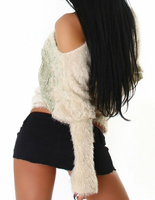 Sexy Miss Damen Winter Flausch Langhaar Pullover Kuschel Pulli 34/36/38 Metallic crem