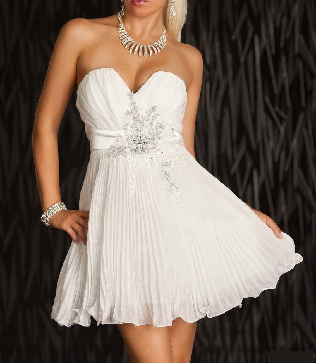 Sexy Miss Edel Damen Cocktail Abend Kleid Chiffon Satin Strass Steine 36 weiß