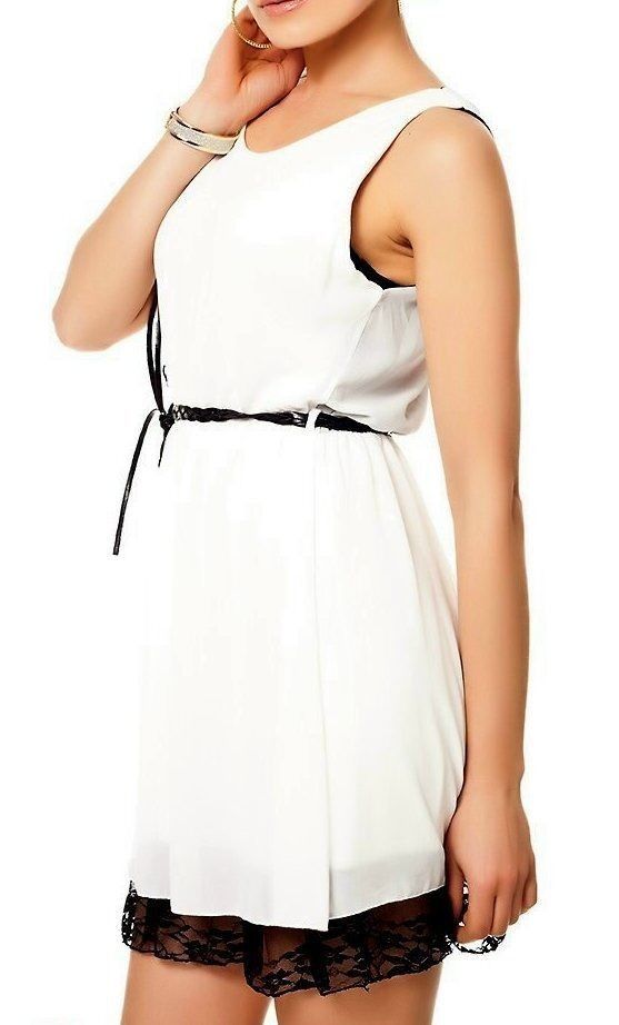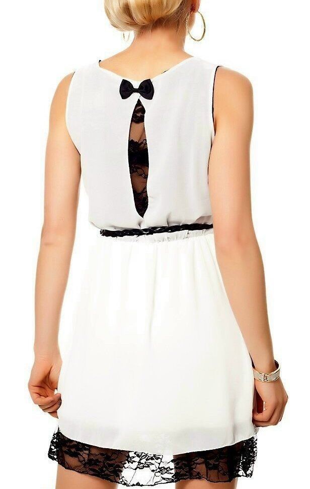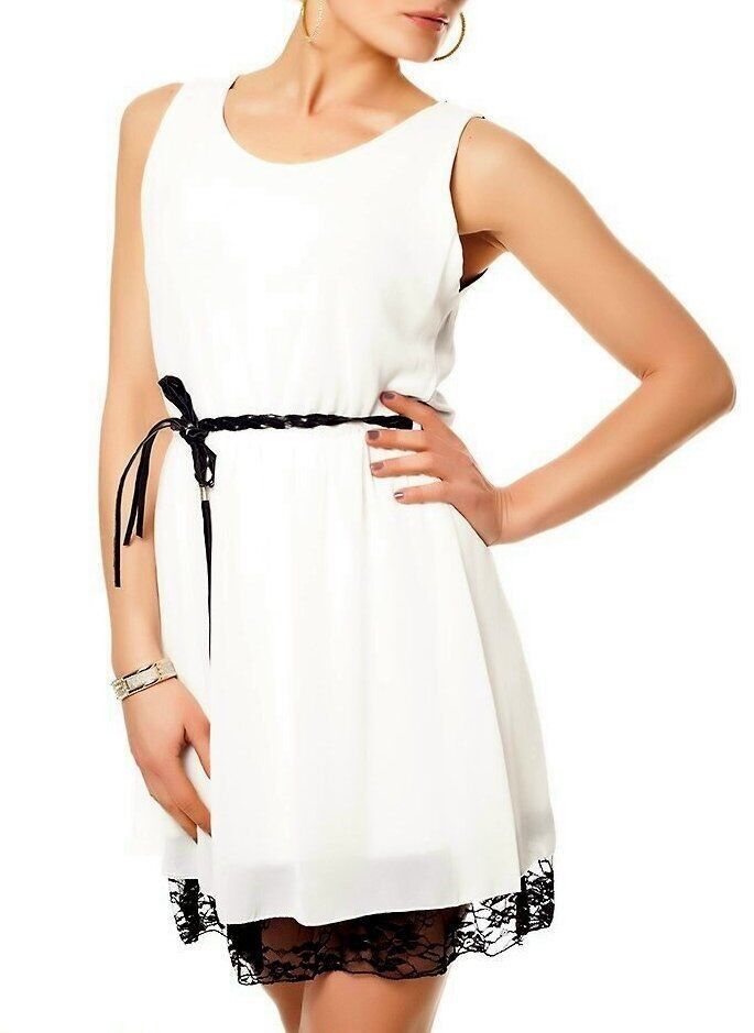 SeXy Miss Mini Kleid Chiffon Spitze Dress 34/36/38 Flecht Gürtel crem/ schwarz