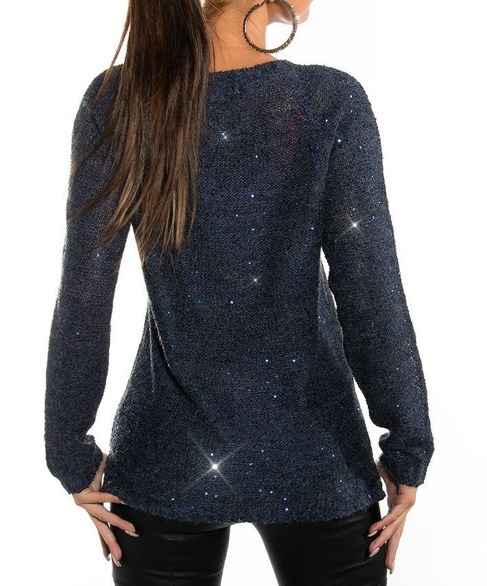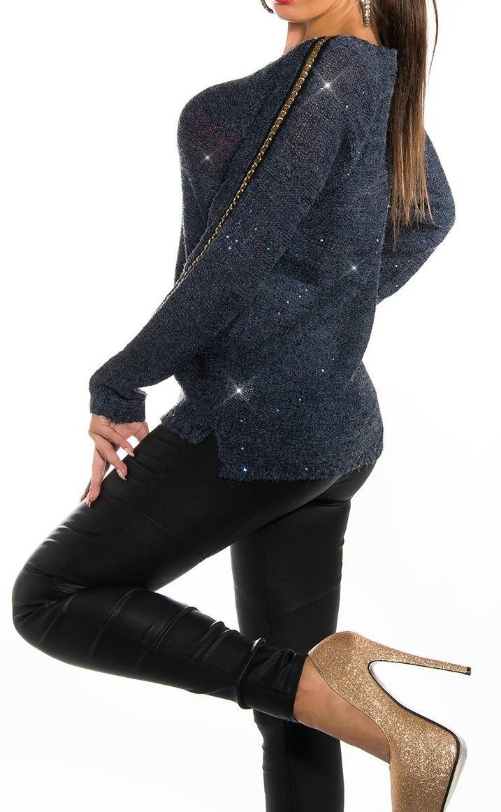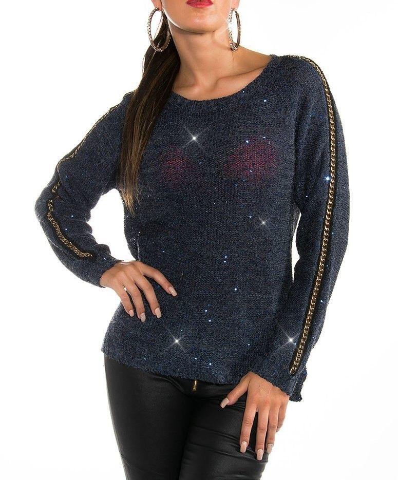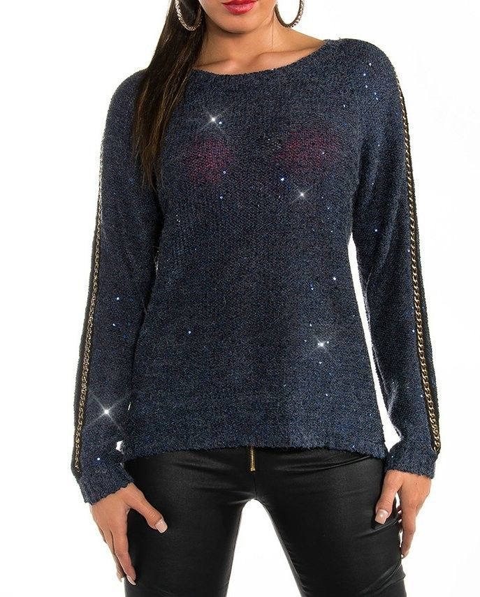 SeXy Miss Oversize Pullover Damen Strick Pulli Pailletten 34/36/38 Kette Gold blau