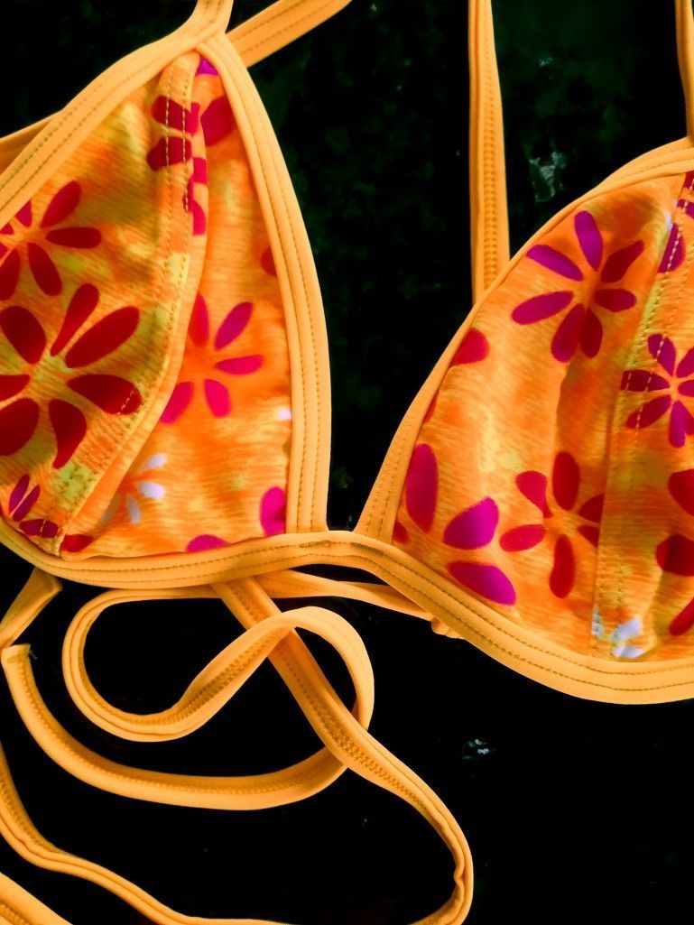 Sexy Flower Wende Bikini Ausgefallener Bikini! in schriller Farbe !! Der Bikini kann beidseitig getragen werden bunt oder uni natürlich auch kombiniert das Triangle Oberteil wird im Nacken gebunden der Kesse Bikinislip ist seitlich zum Binden Sexy,verführerisch,exklusiv! auffälliges Strand-Highlight