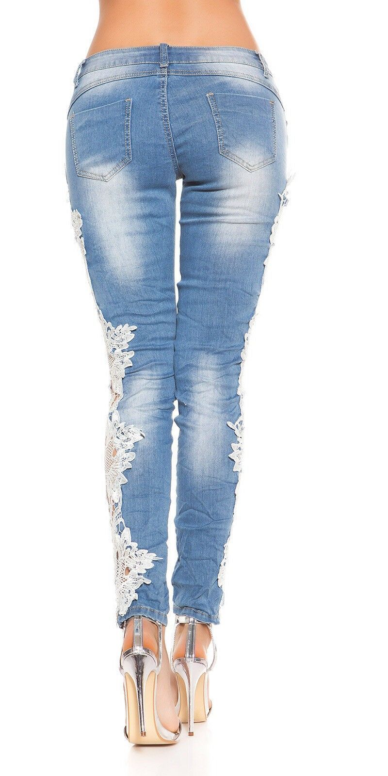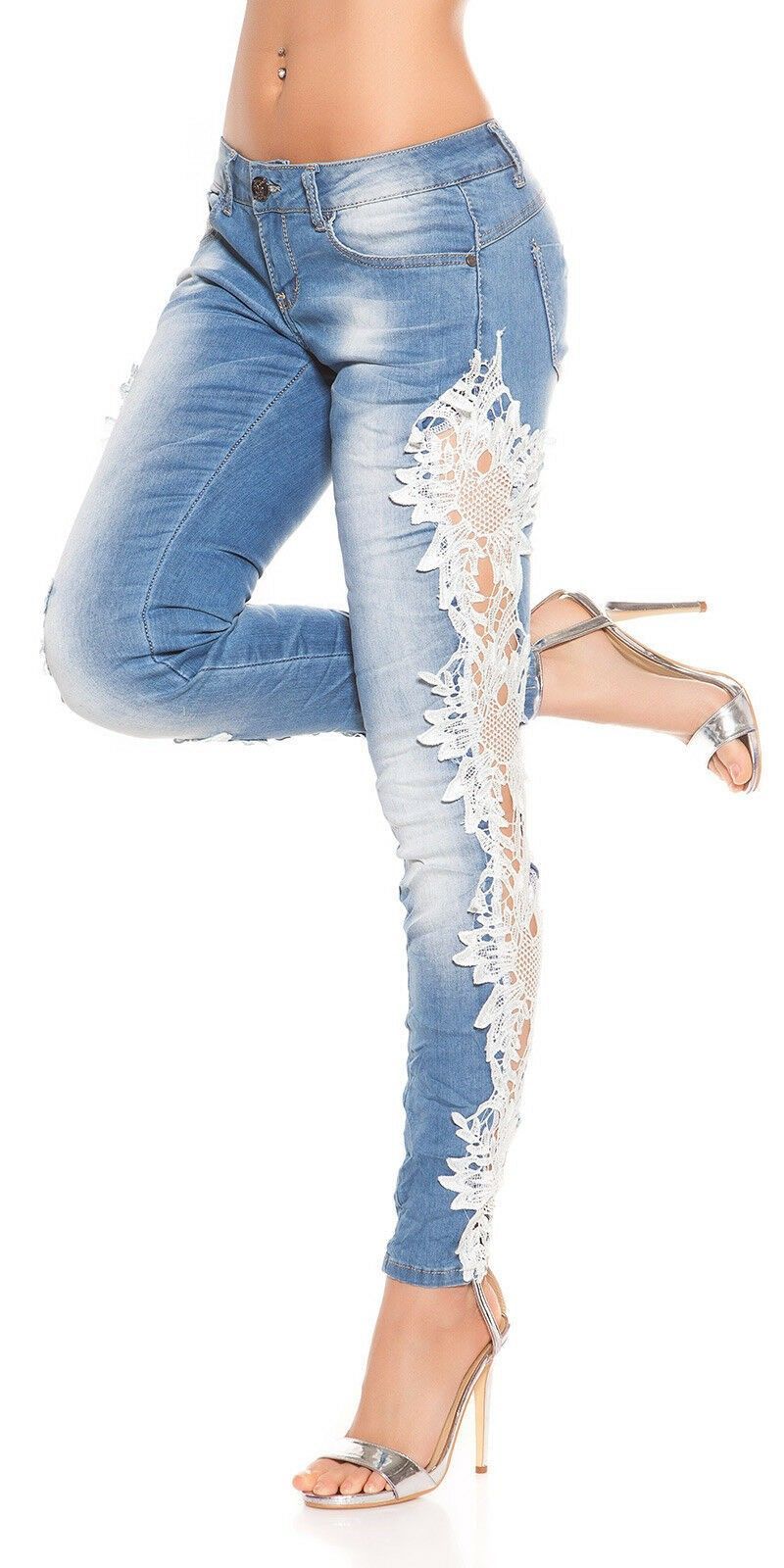 SeXy Miss Trendy Damen Girl Hüft Jeans Hose Häkel Spitze Leg 32 34 36 38 40 blau