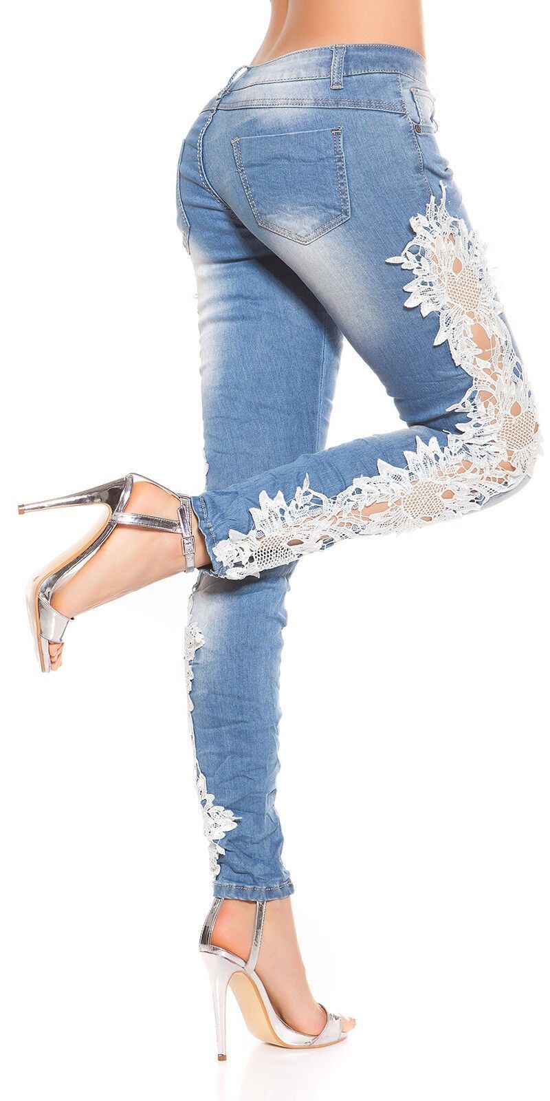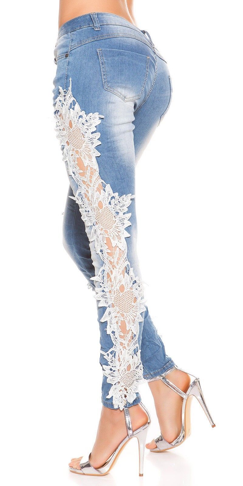 traumhafte 5 Pocket Hose sehr auffällige Jeans Hose mit Reisverschluß und Knopf zum Schließen mit Gürtelschlaufen seitlich out cut mit Häkelspitze Einsatz Eye Catcher Pur Hot & Sexy In-Style Look _____________________________ Im Artikel steht Französische Größe Maße in ungedehnten Zustand Länge
