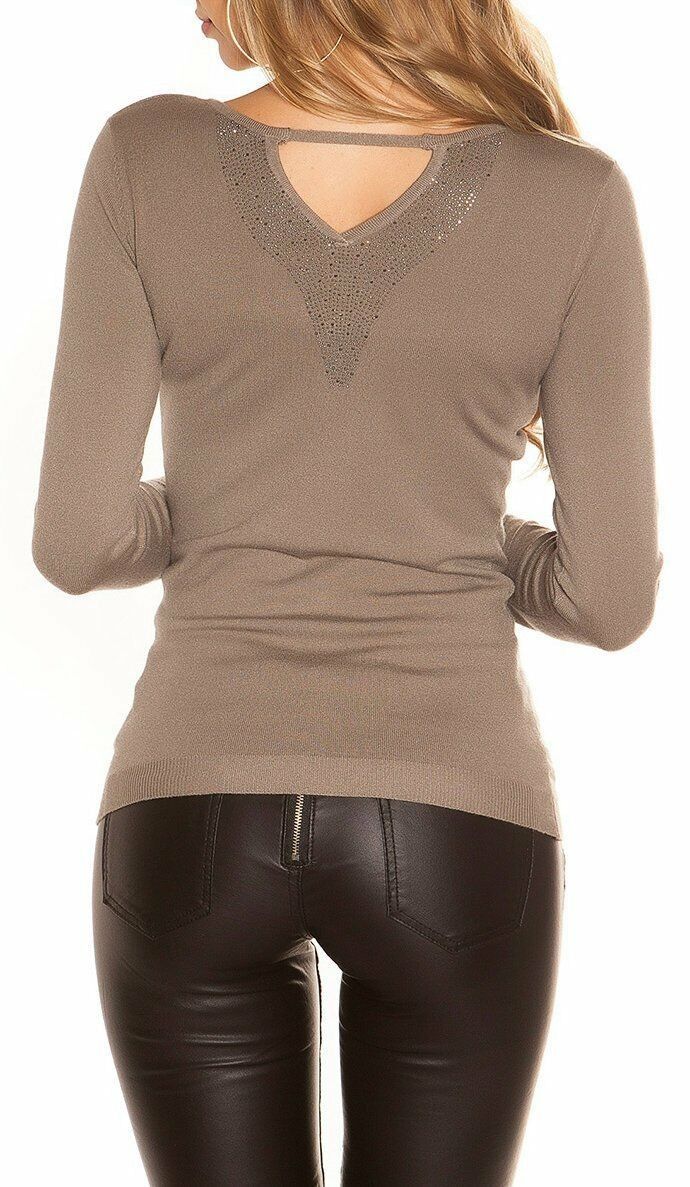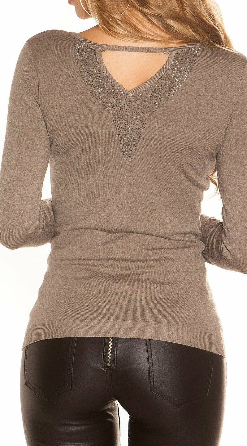 SeXy Miss V Pullover Strass Rücken Look Damen Girly Feinstrick Pulli 34/36/38 braun