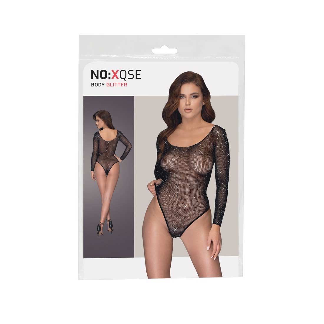 Sexy Netz-Body S M L Strass durchsichtig Damen Dessous schwarz bodysuit "Leandra