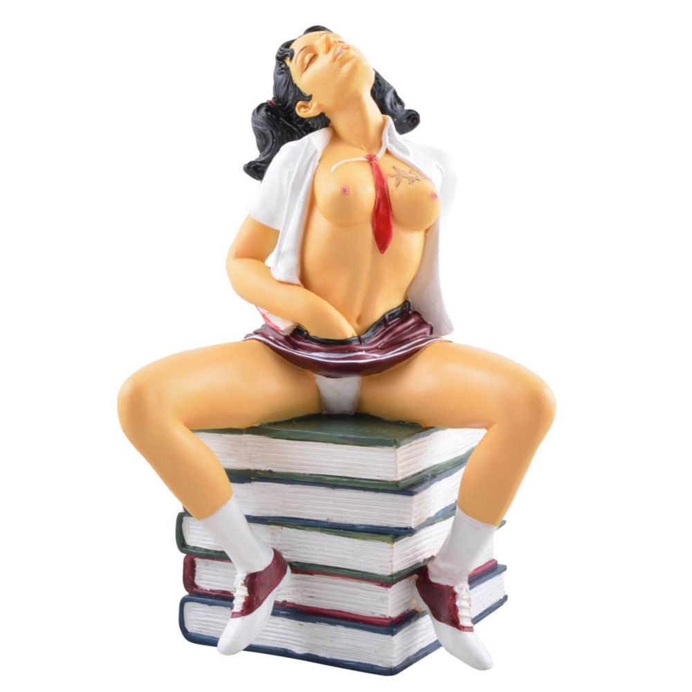 Sexy Schulmädchen sitzt auf Büchern Hand im Höschen