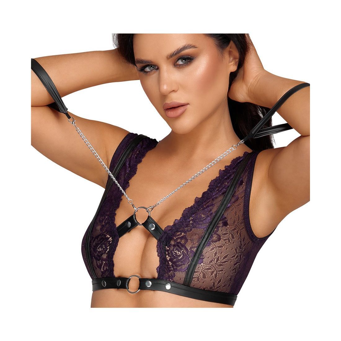 Sexy Straps BH-Set S-XL Schritt offen + 6 Strapse + Dessous Reizwäsche "Paulina"