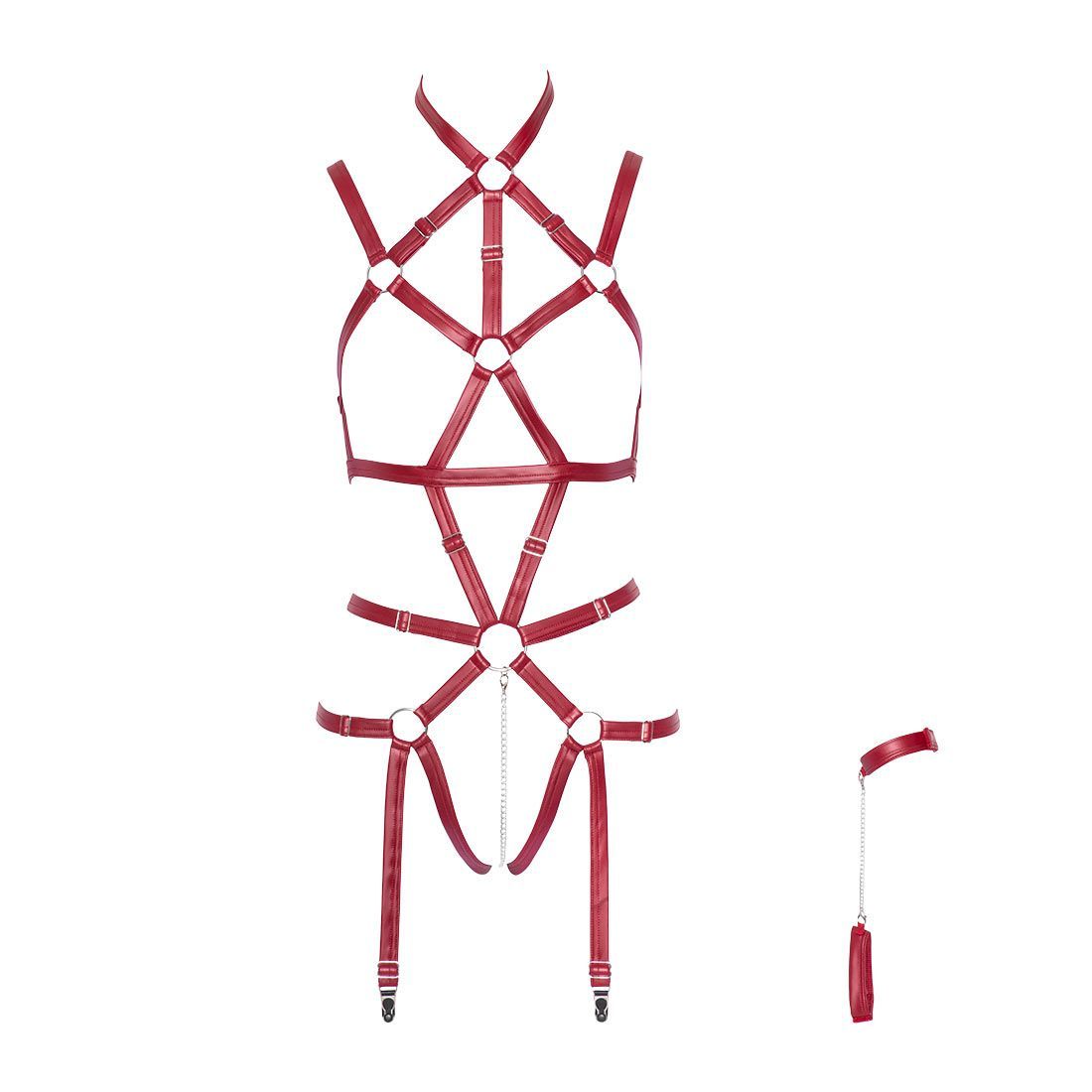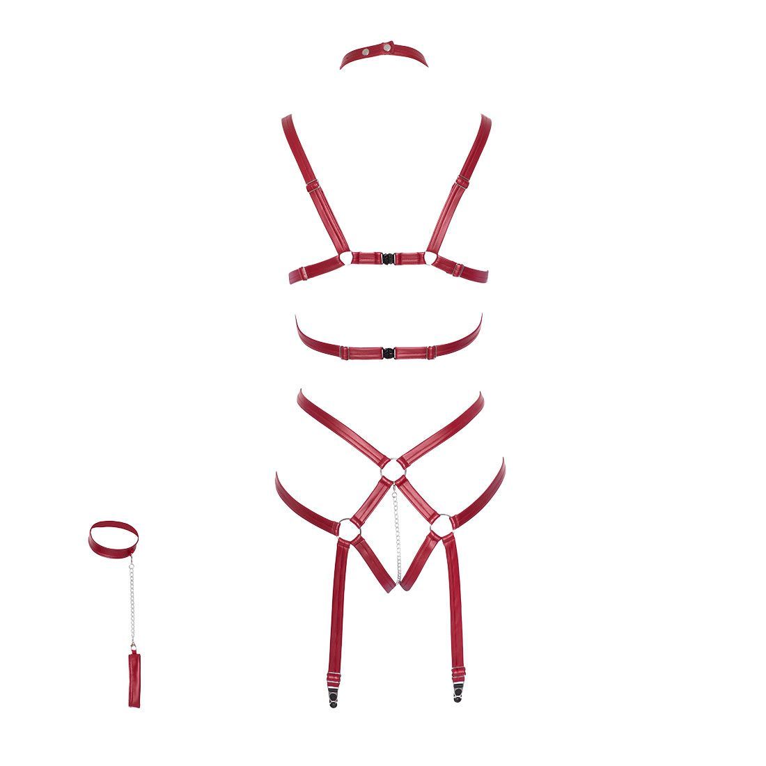 Sexy Straps-Body S M L XL Harness Hand-Fesseln Mattlook Reizwäsche Rot "Luzifer"