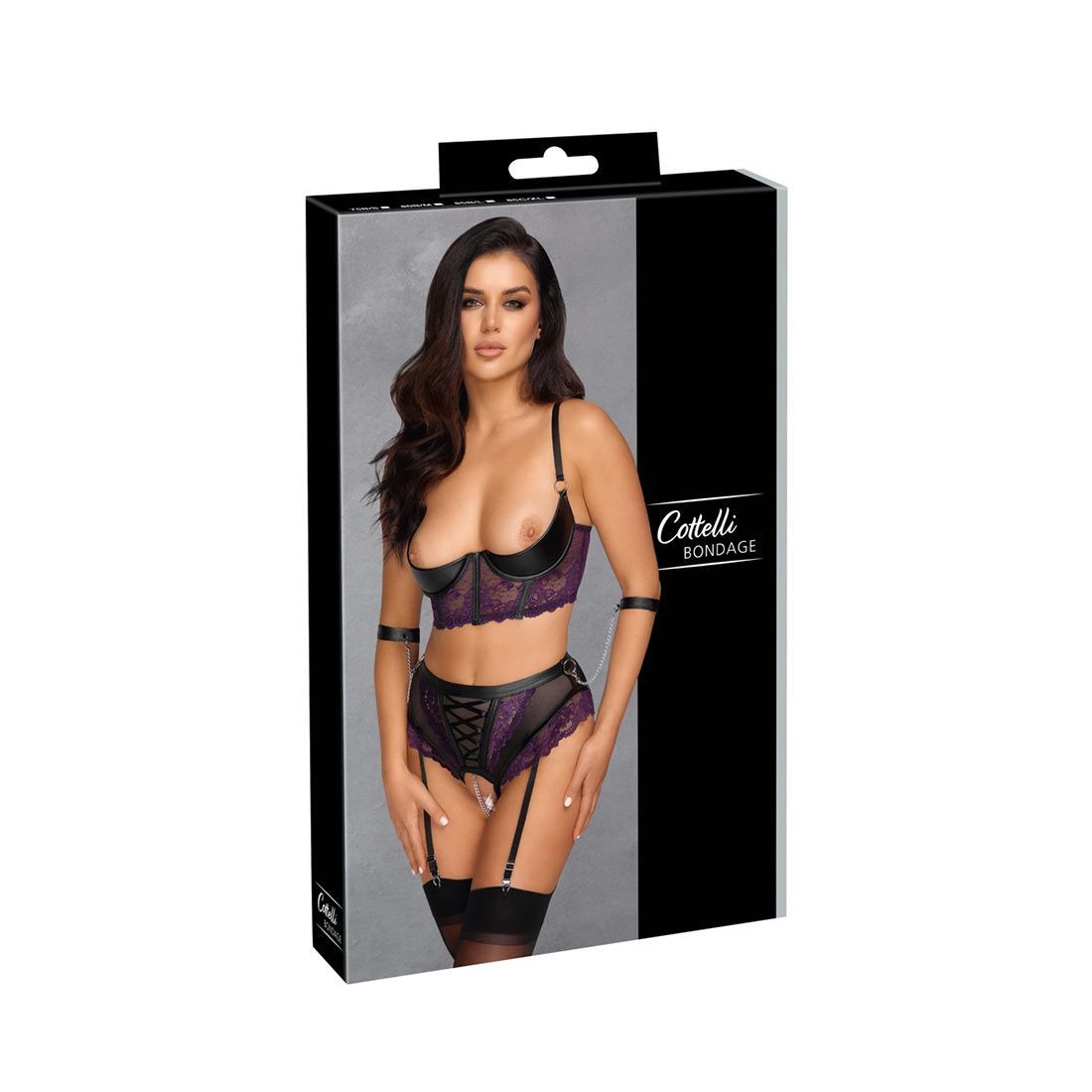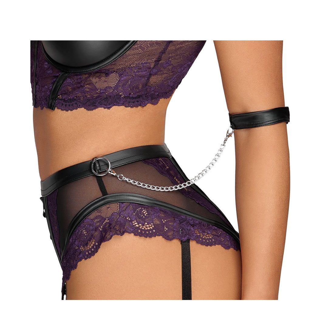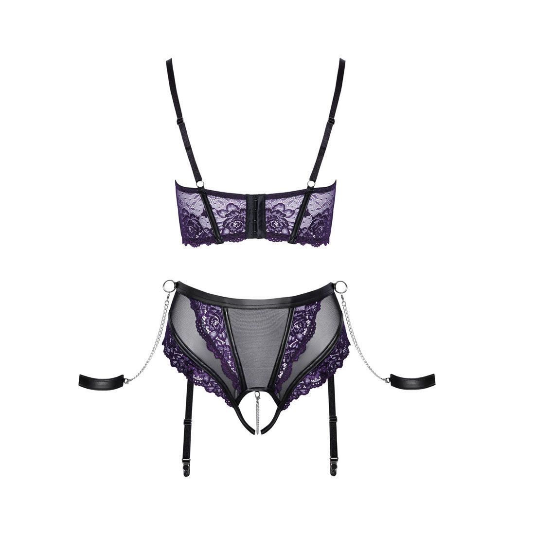 Sexy Straps Hebe BH-Set S-XL Busen + Schritt offen + Schritt-Kette Dessous "Bree