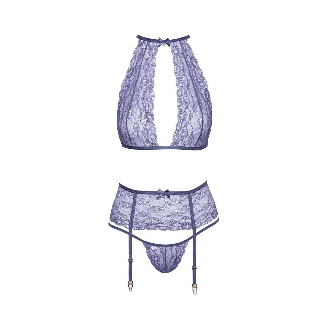 Sexy Straps-Set S-XL mit Spitze + in zartem Lavendel + Damen Dessous "Carletta"