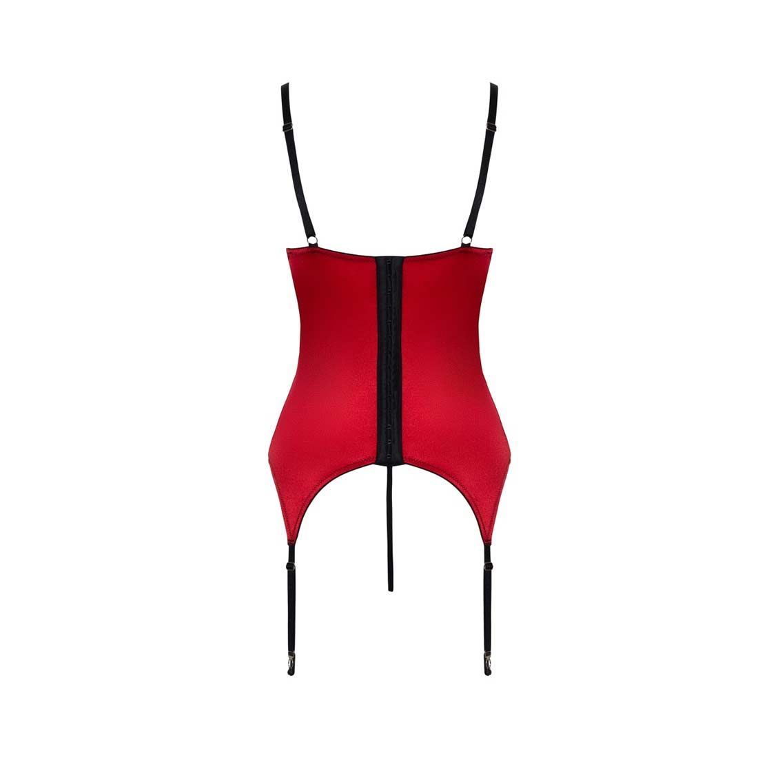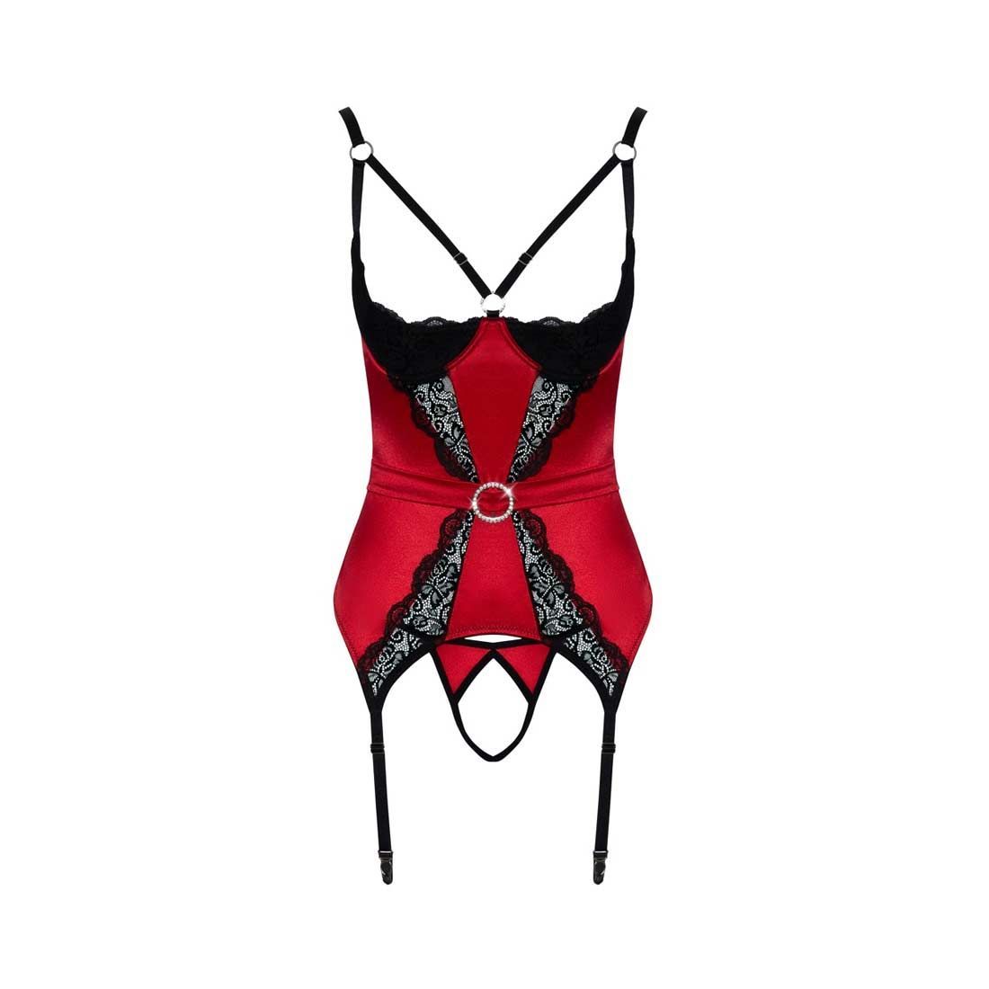 Sexy Strapshemd Set Rot Strapse Satin Cups Schritt offen Dessous Spitze "Kimia"