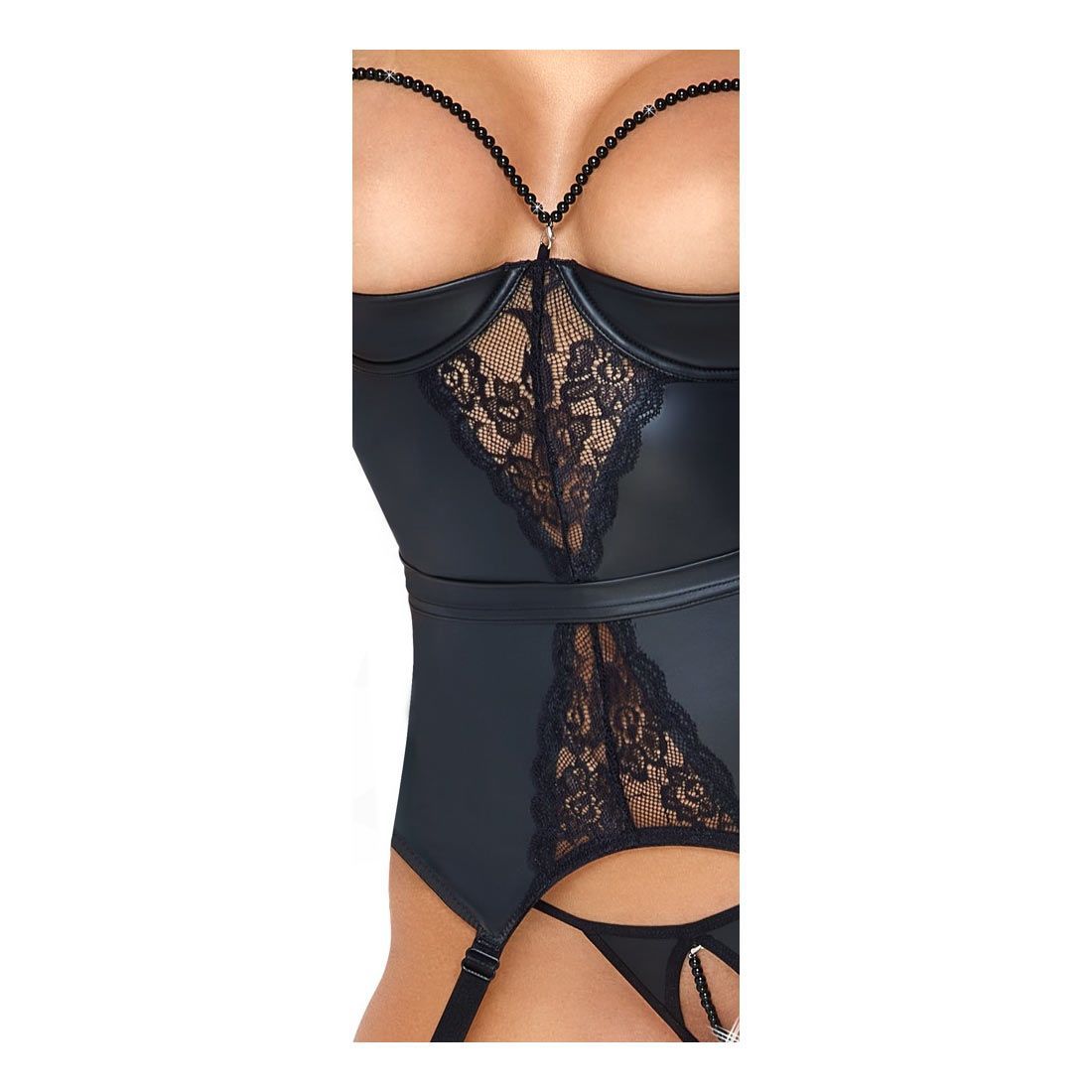 Sexy Strapshemd Set S-L Schritt offen Perlen-Ketten Dessous Reizwäsche "Melody"