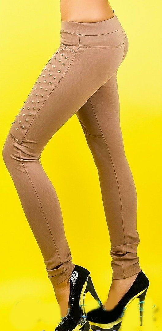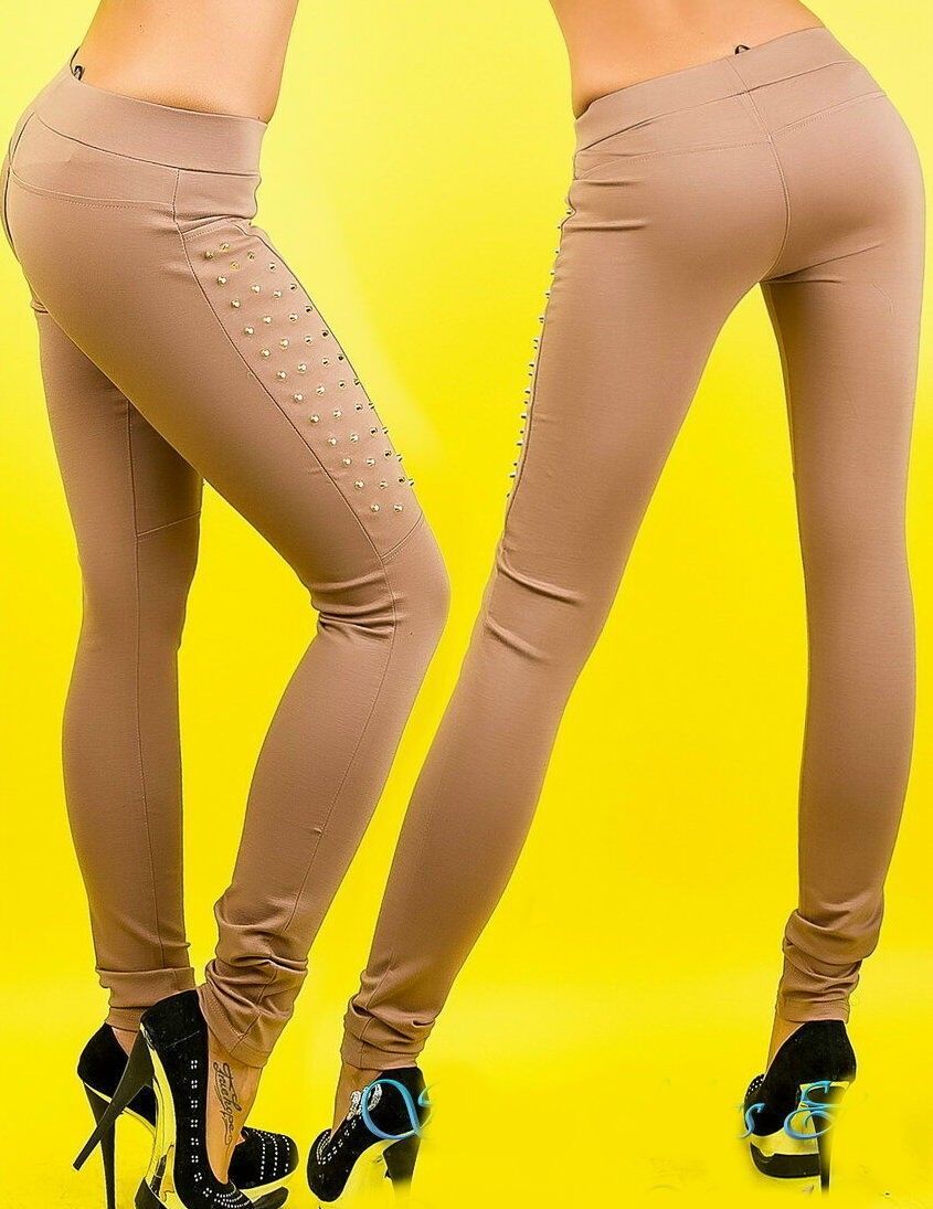 SeXy Stretch Hüft Hose Stoff Röhre skinny Nieten gold S 34 M 36 L 38 XL 40 braun