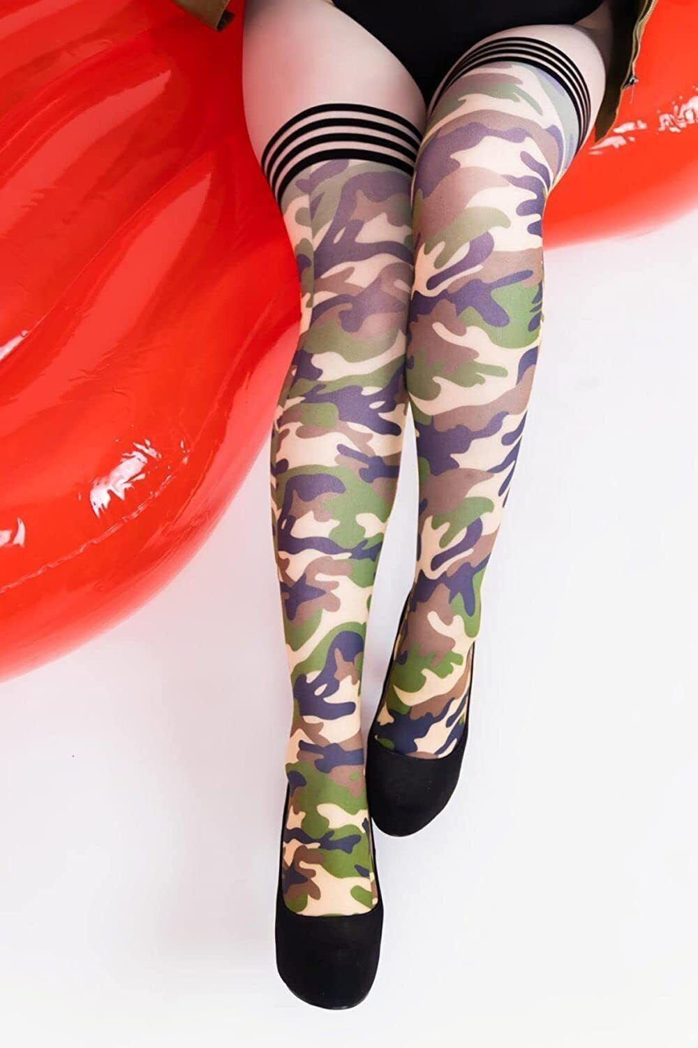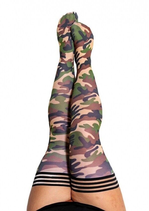 Sexy Strümpfe Camouflage - Army Look- Halterlose Stockings Tarnoptik M, L, XL