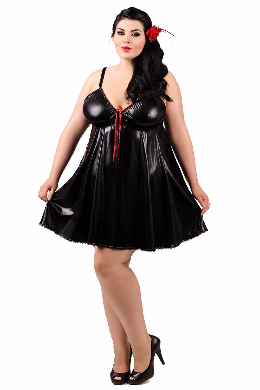 Sexy Wetlook Babydoll Schwarz Negligè Nachtkleid Übergröße 38/40 bis 54/56