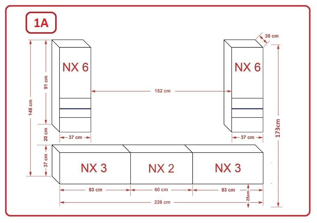 Sezana N21 Möbel für Wohnzimmer Wohnwand Mediawand Schrankwand Wohnschrank