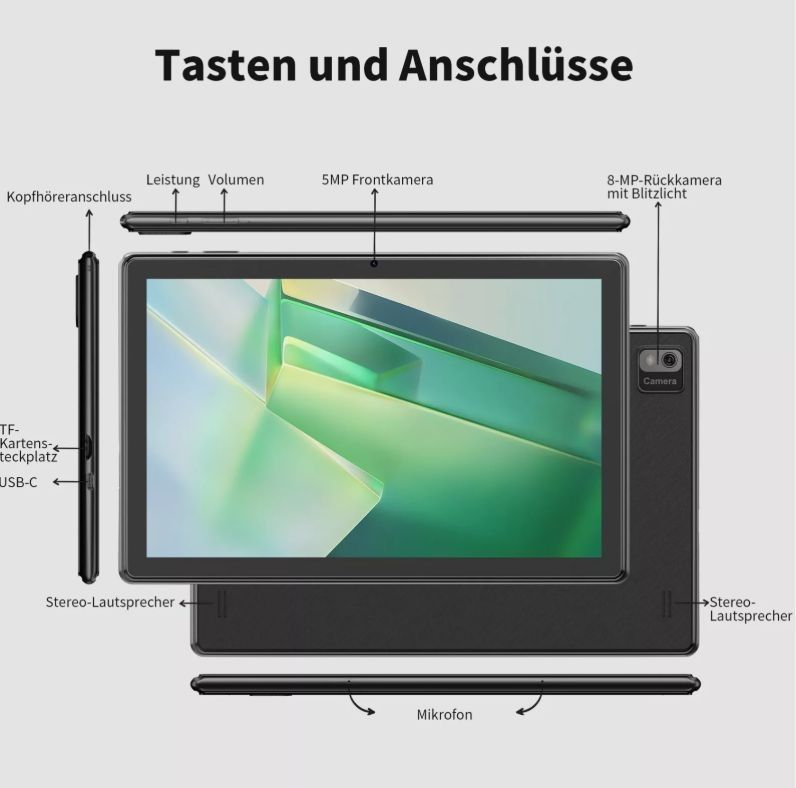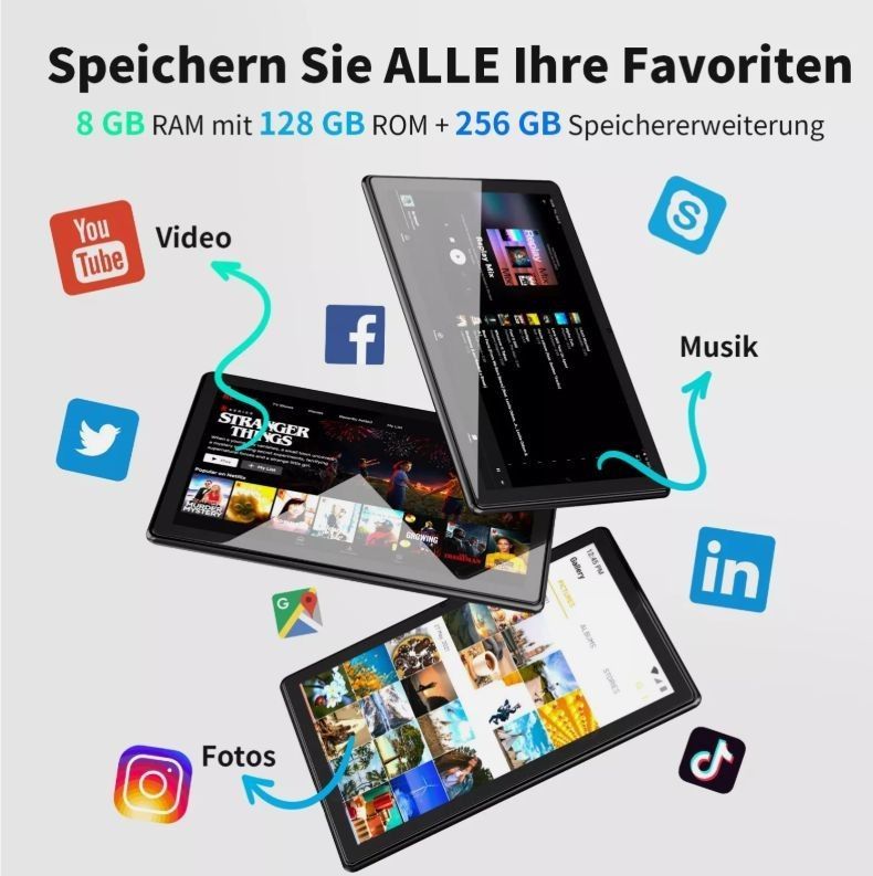 SGIN T10P Tablet - 10" IPS Glas,128 GB ROM, 8 GB RAM, WiFi, Android 12