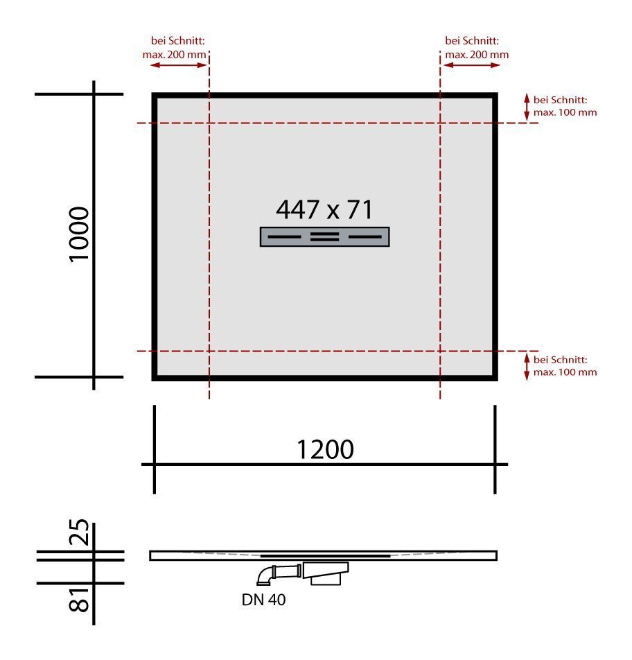 SGP120100 bodengleiche Dusche 120x100 mit RINNE Mineralguss