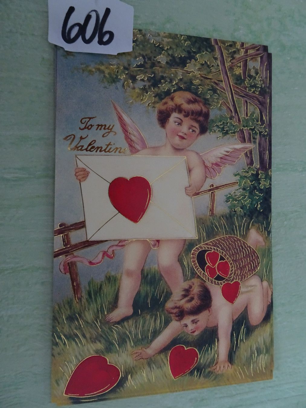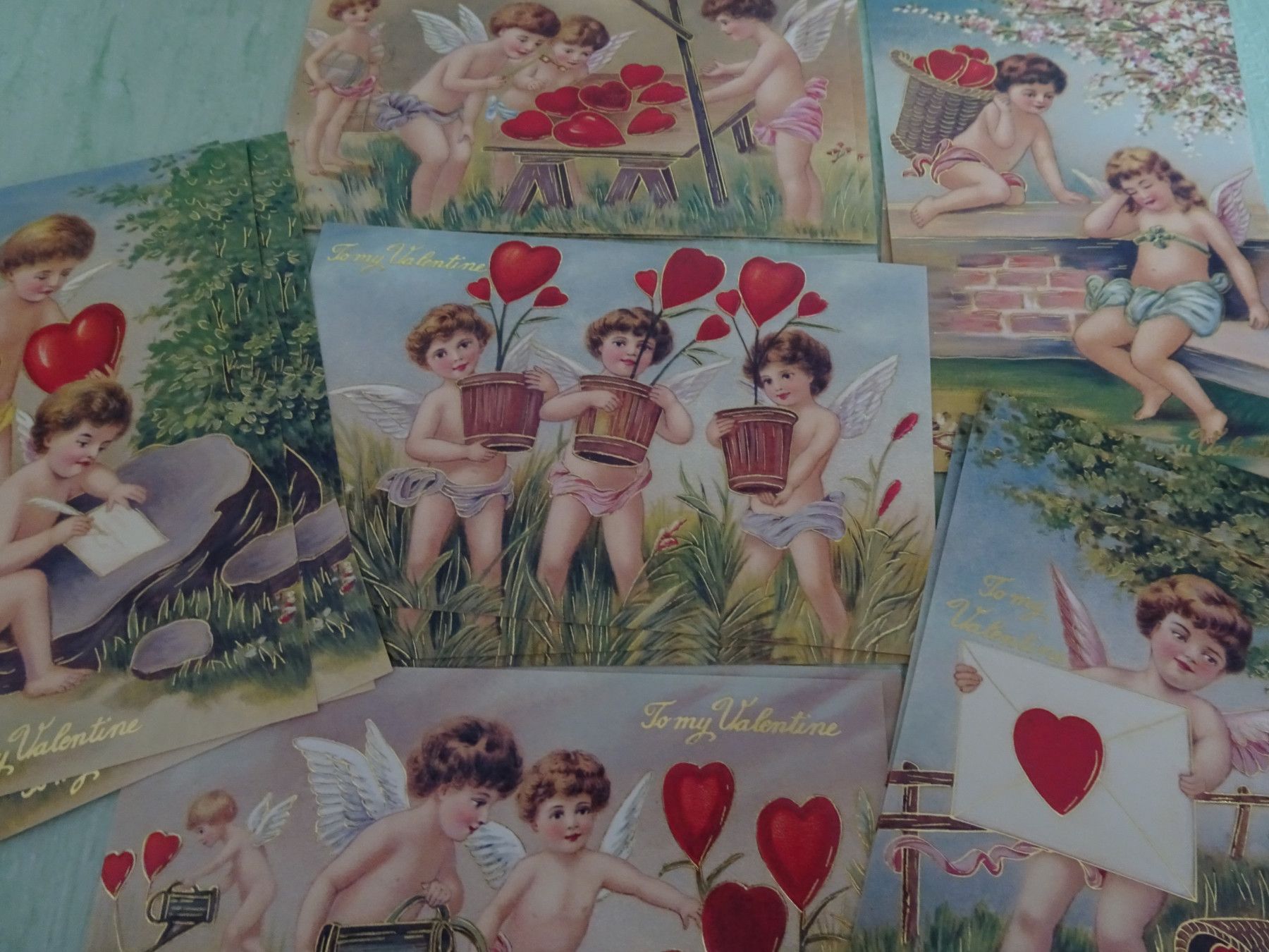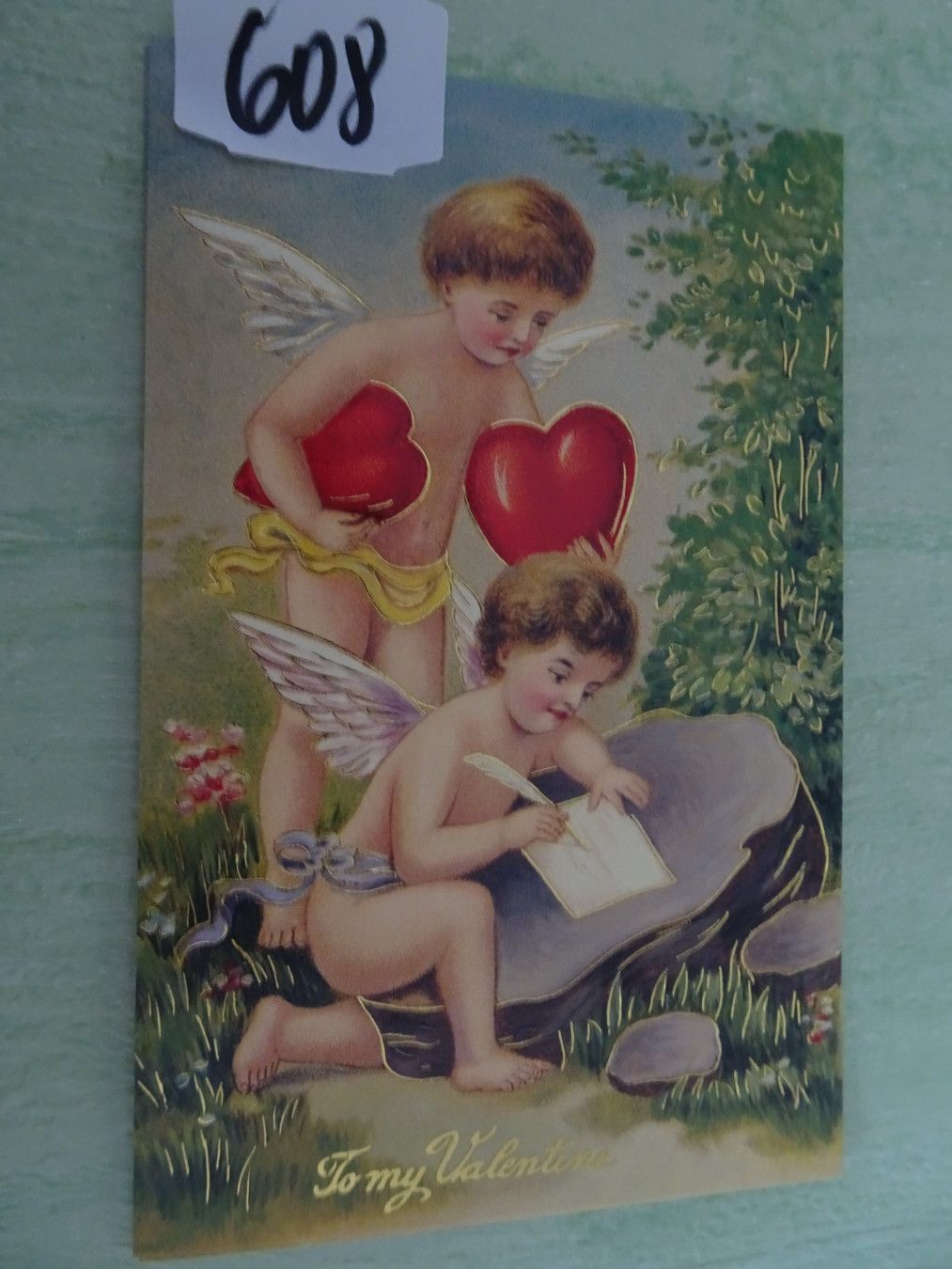 Shackman 90er Victorian geprägte folienverzierte Postkarten AK Tony Valentine Liebe