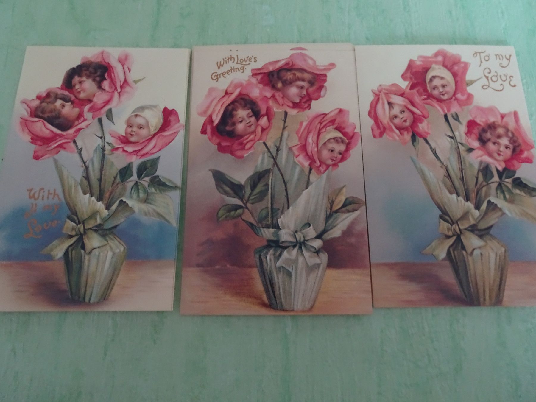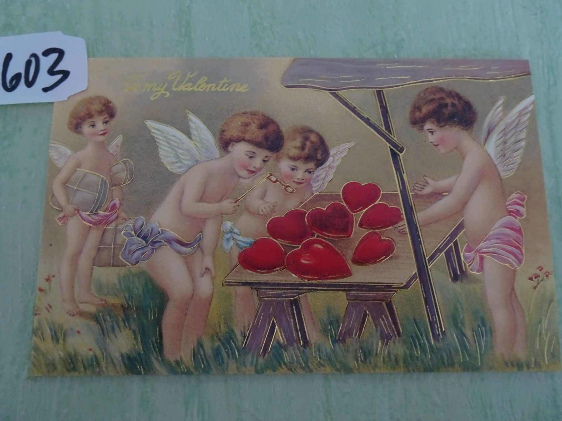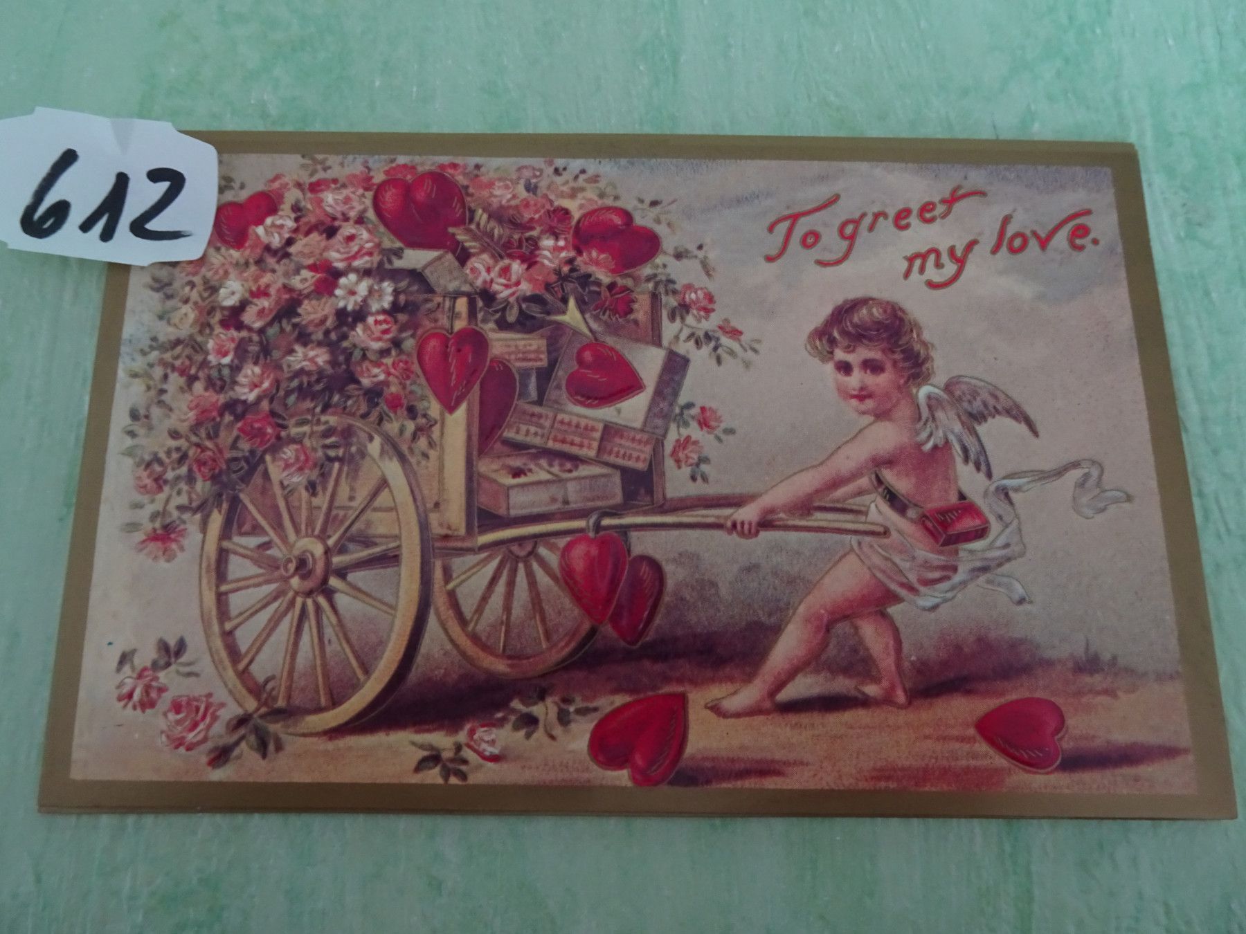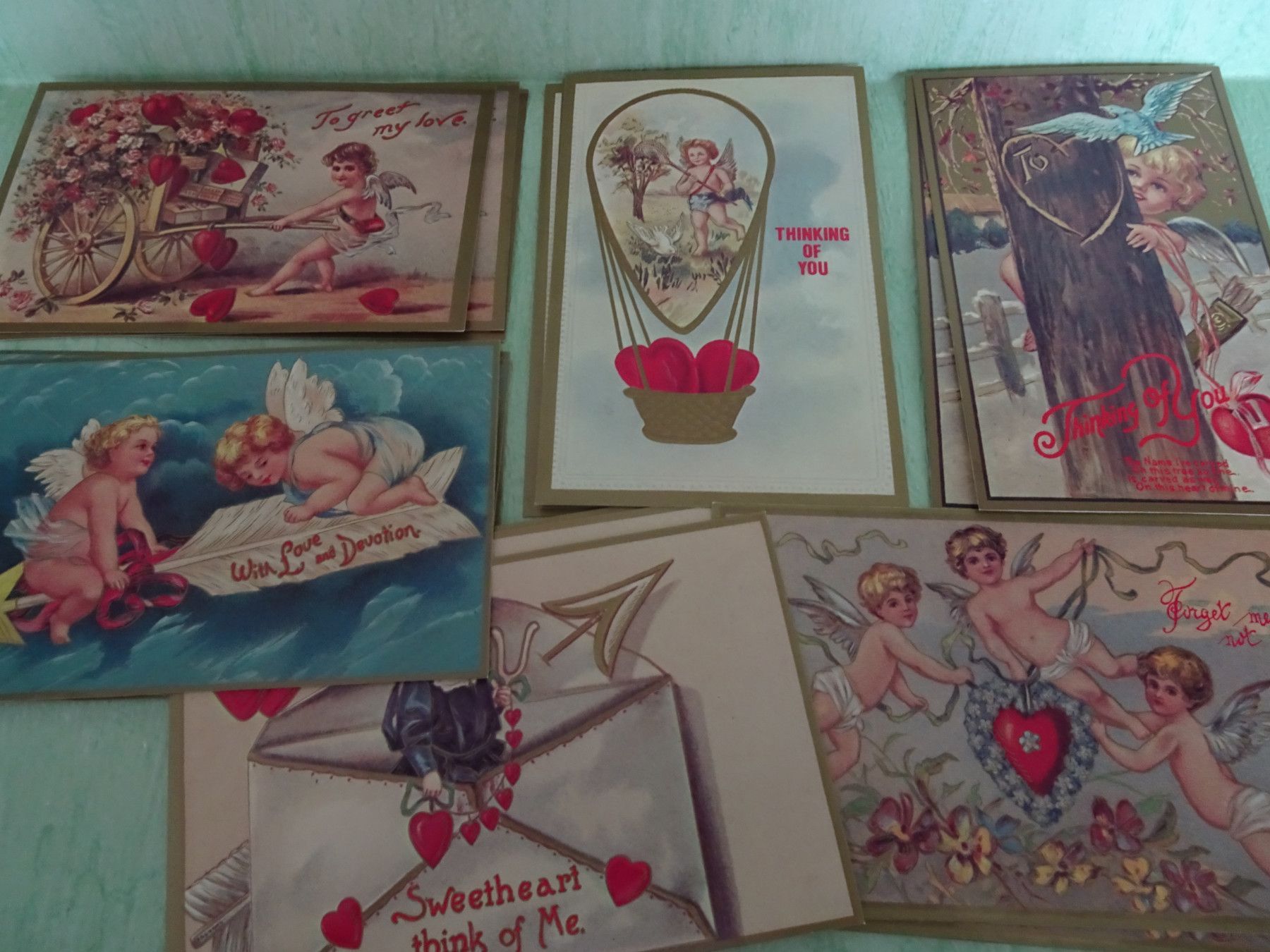 Shackman 90er Victorian geprägte folienverzierte Postkarten AK Tony Valentine Liebe