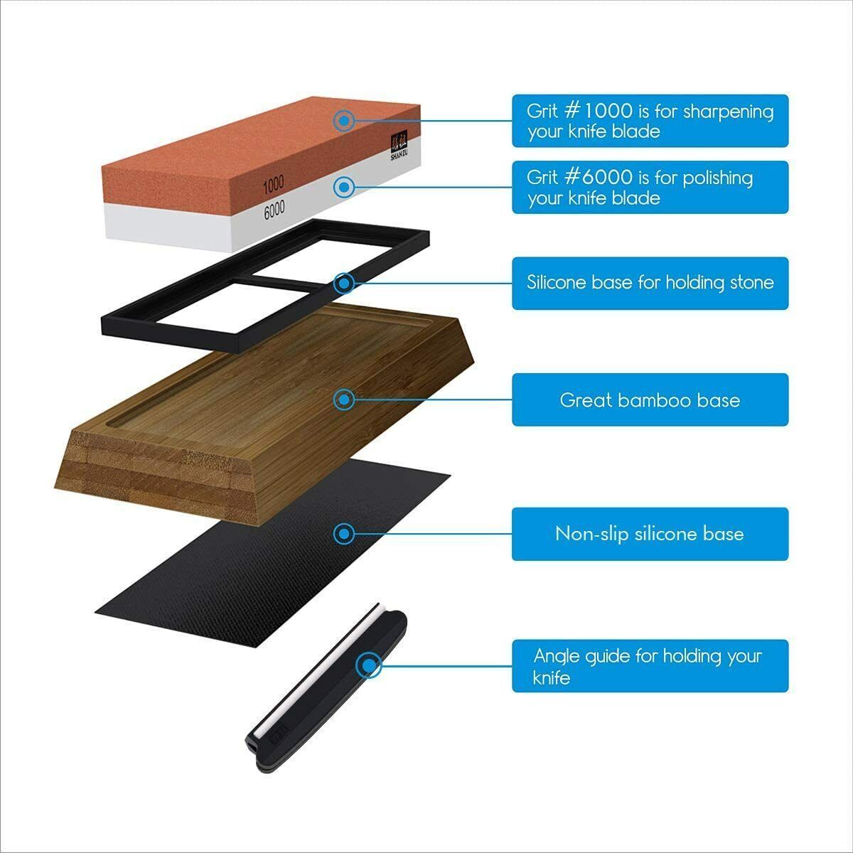 SHAN ZU Schleifstein Abziehstein Wetzstein Körnung 1000-6000 Doppelseitig