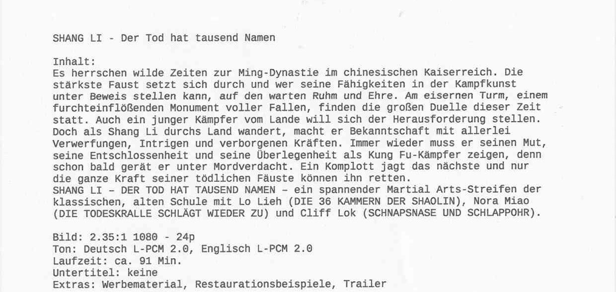 Shang Li - Der Tod hat tausend Namen