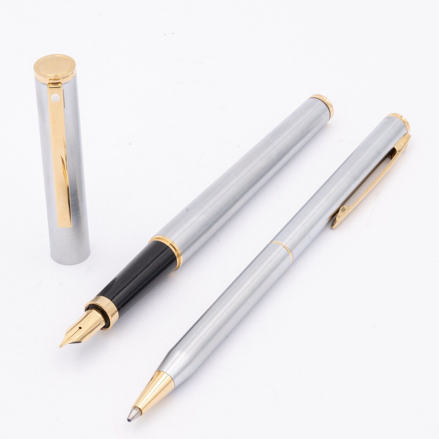 Sheaffer Fashion II Set Füller M Kugelschreiber Edelstahl Gold Silber NOS
