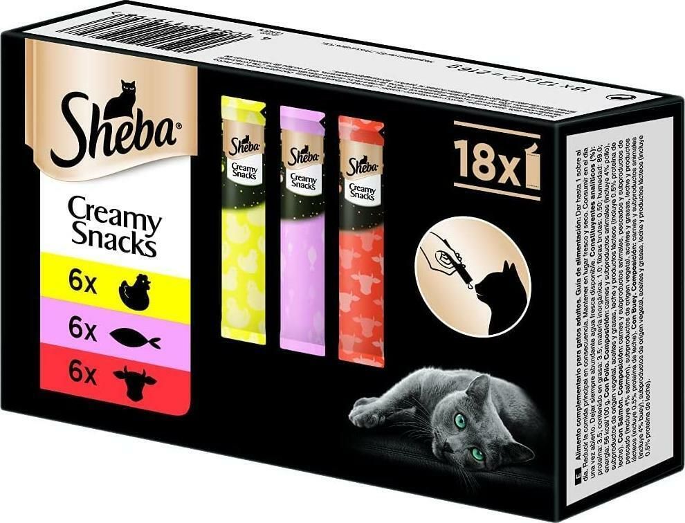 Sheba Creamy Snacks Cremig Katzenfutter Leckerli Huhn Lachs Rind 18 Stéck 216 g