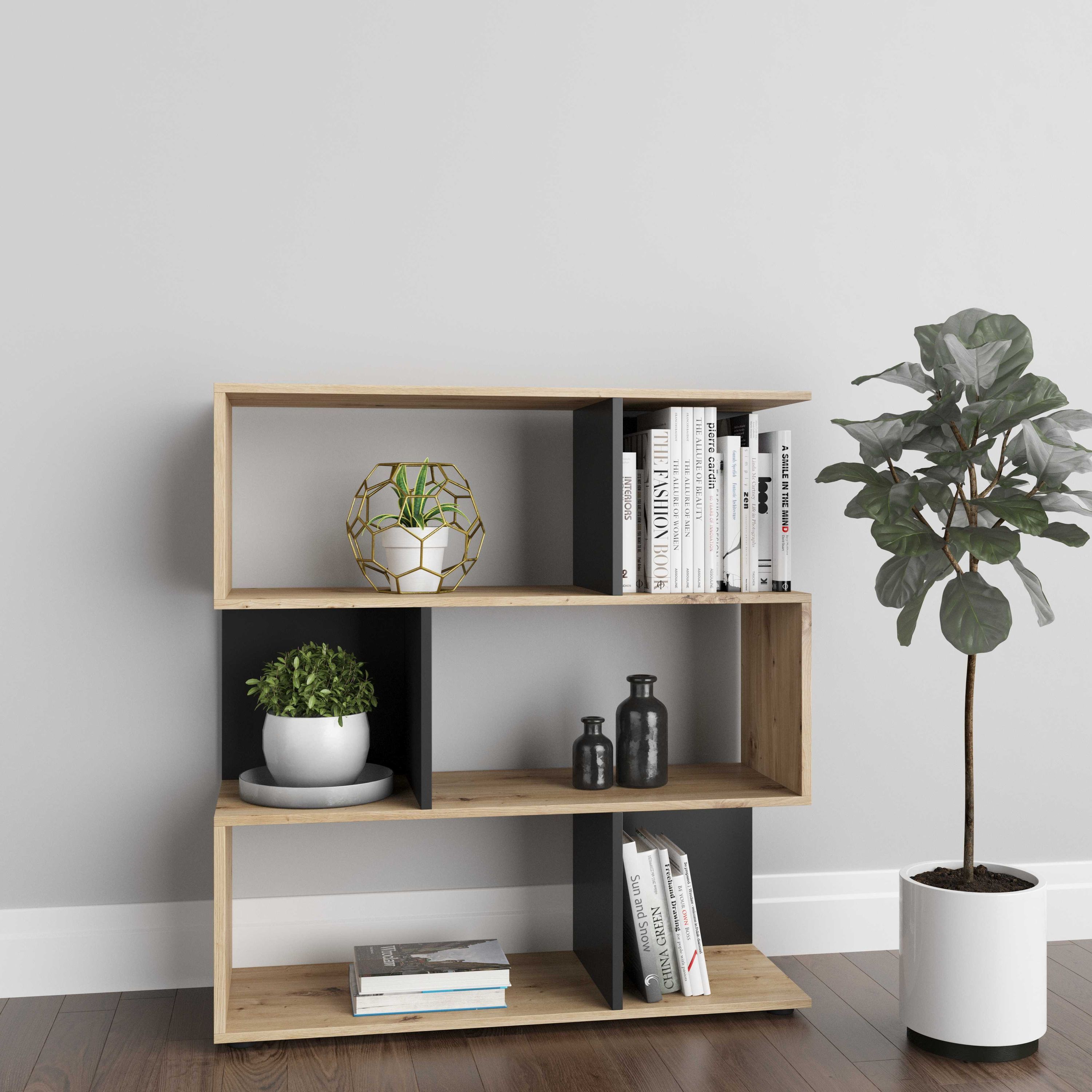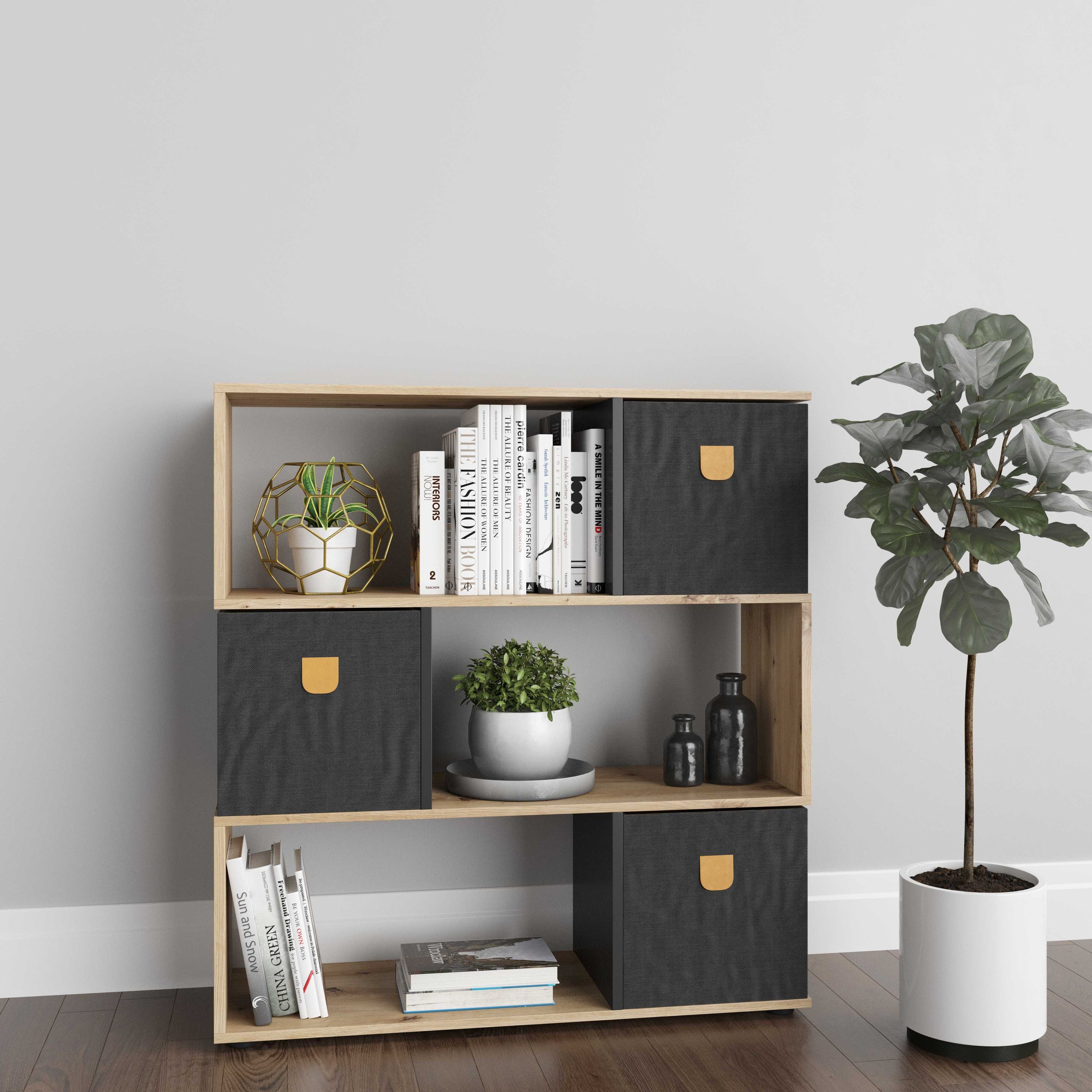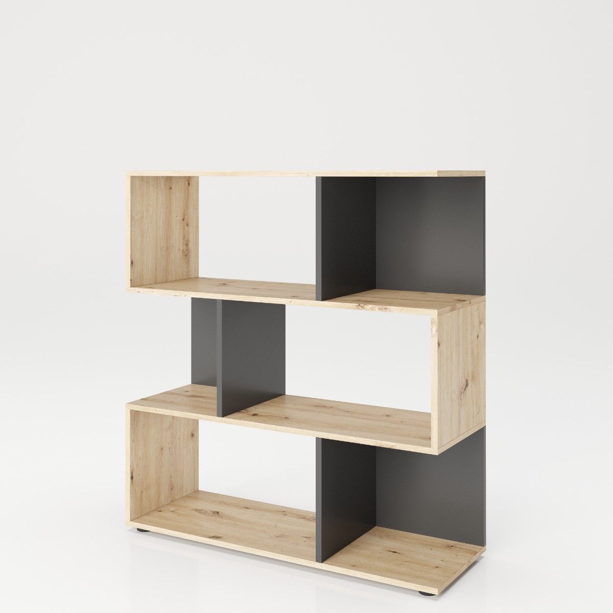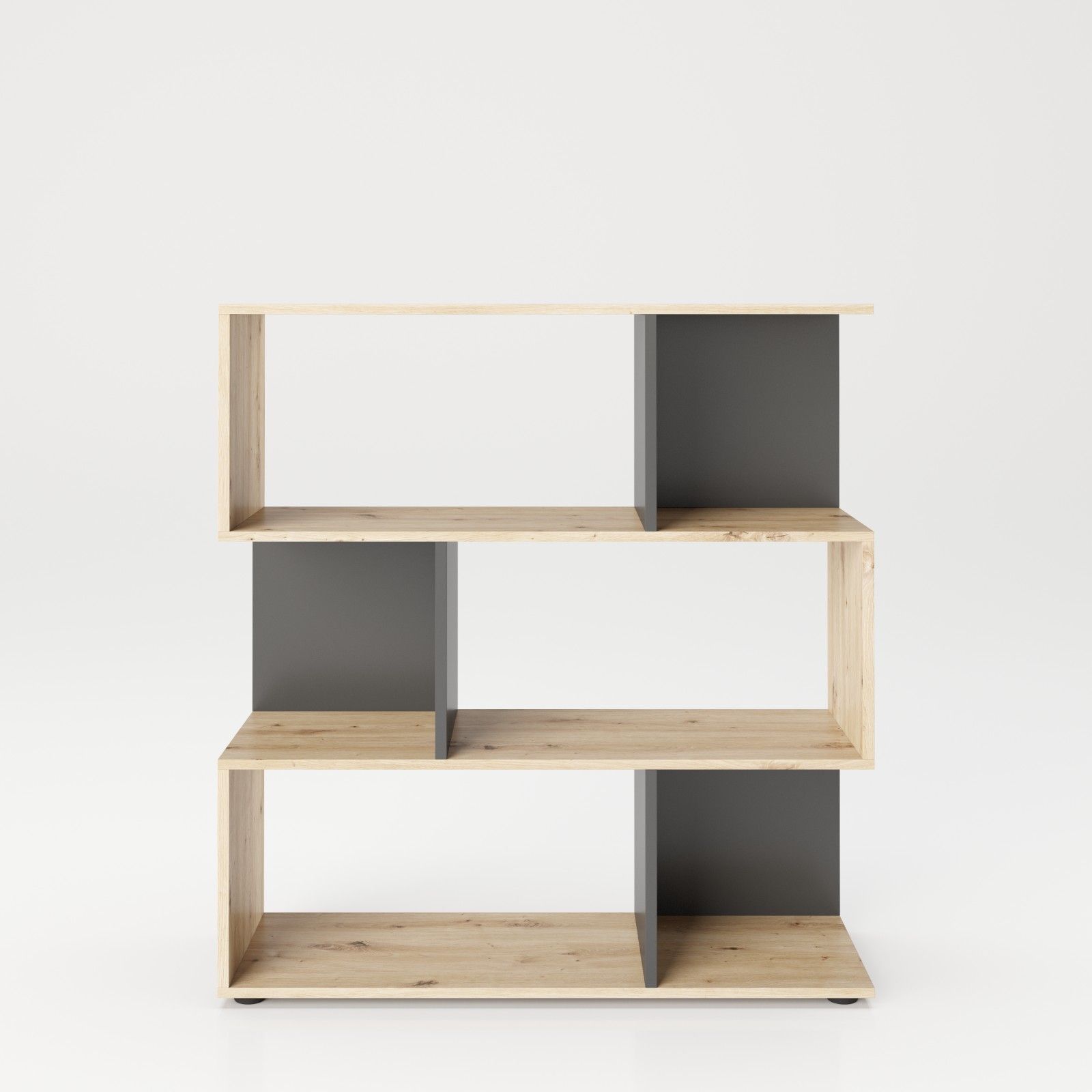 Shelfy - Bücherregal, Büroregal, Raumteiler mit 6 Fächern, eiche/grau